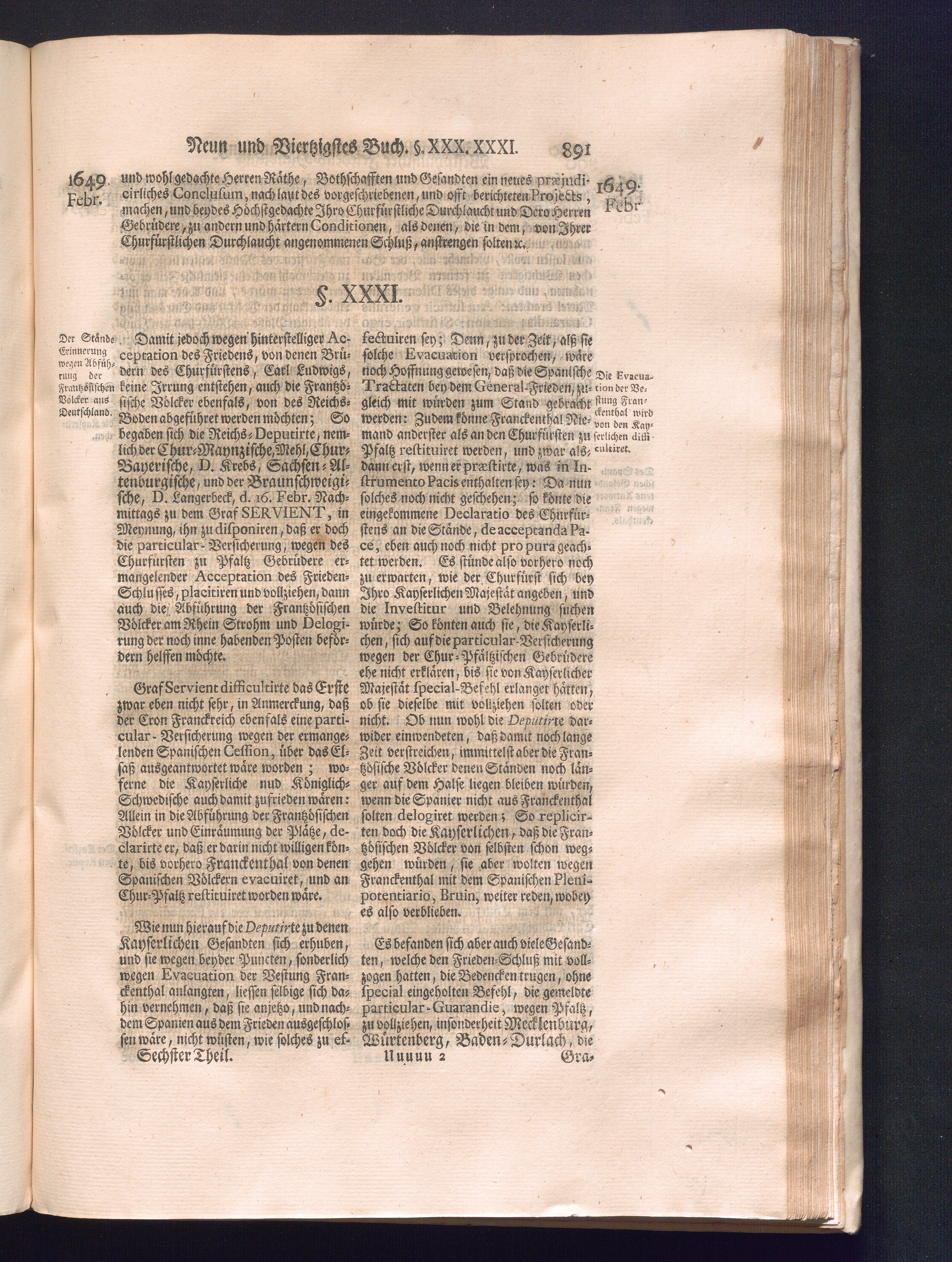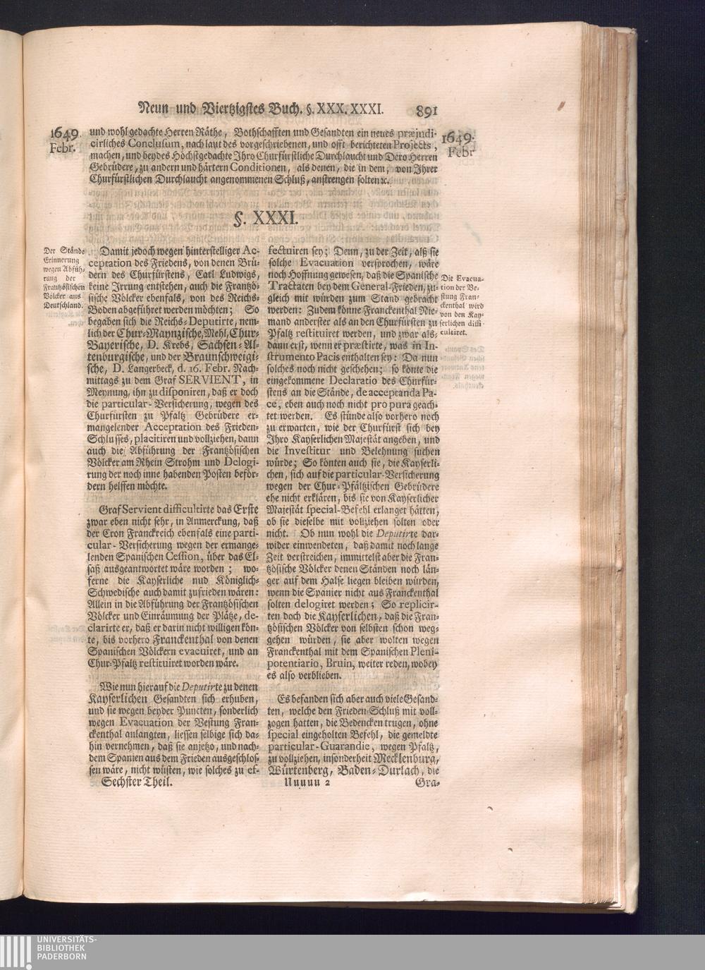 Sechster Theil (1736) Worinnen enthalten ist, was vom Monath Junio des Jahrs 1648. biß zu dem, im Jahr 1649. völlig erfolgten Schluß und Ende des Universal-Friedens-Congressus zu Oßnabrück und Münster, gehandelt und geschlossen worden