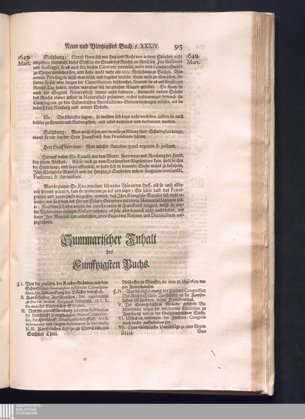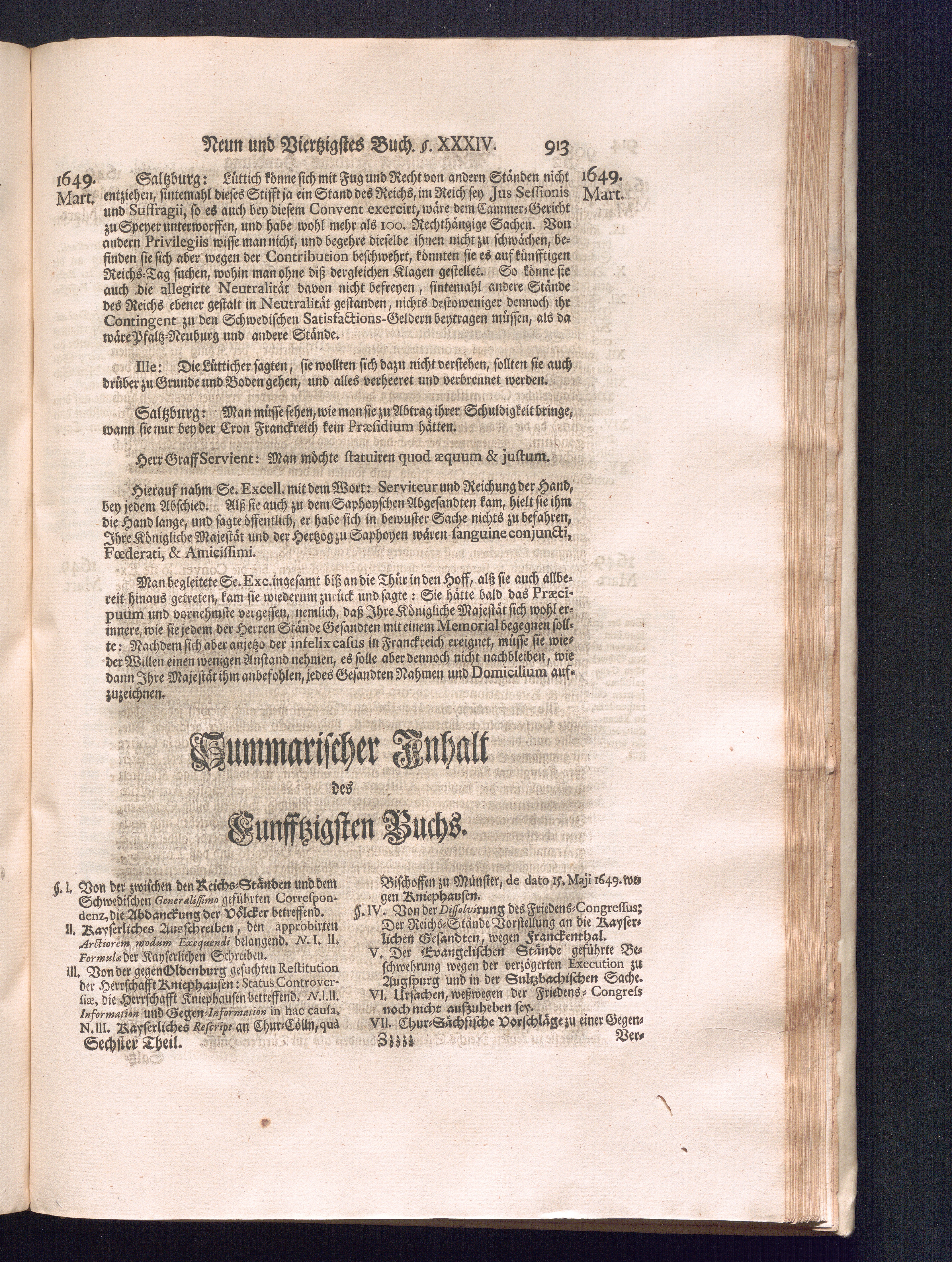 Sechster Theil (1736) Worinnen enthalten ist, was vom Monath Junio des Jahrs 1648. biß zu dem, im Jahr 1649. völlig erfolgten Schluß und Ende des Universal-Friedens-Congressus zu Oßnabrück und Münster, gehandelt und geschlossen worden