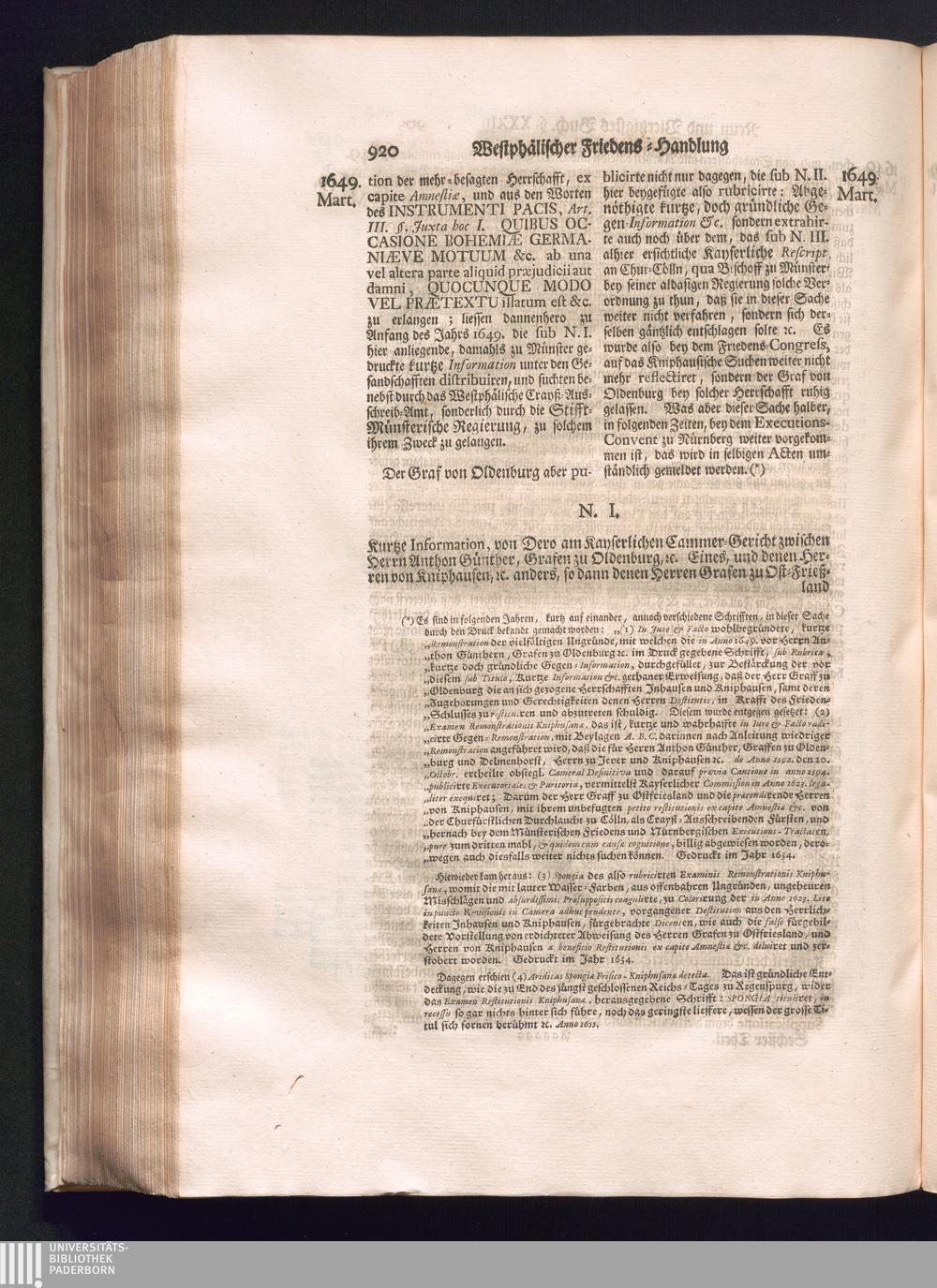 Sechster Theil (1736) Worinnen enthalten ist, was vom Monath Junio des Jahrs 1648. biß zu dem, im Jahr 1649. völlig erfolgten Schluß und Ende des Universal-Friedens-Congressus zu Oßnabrück und Münster, gehandelt und geschlossen worden