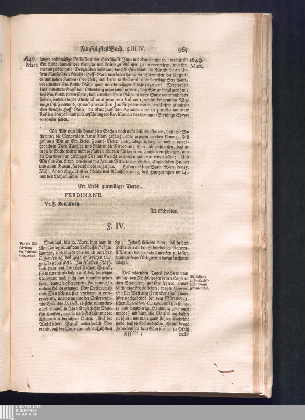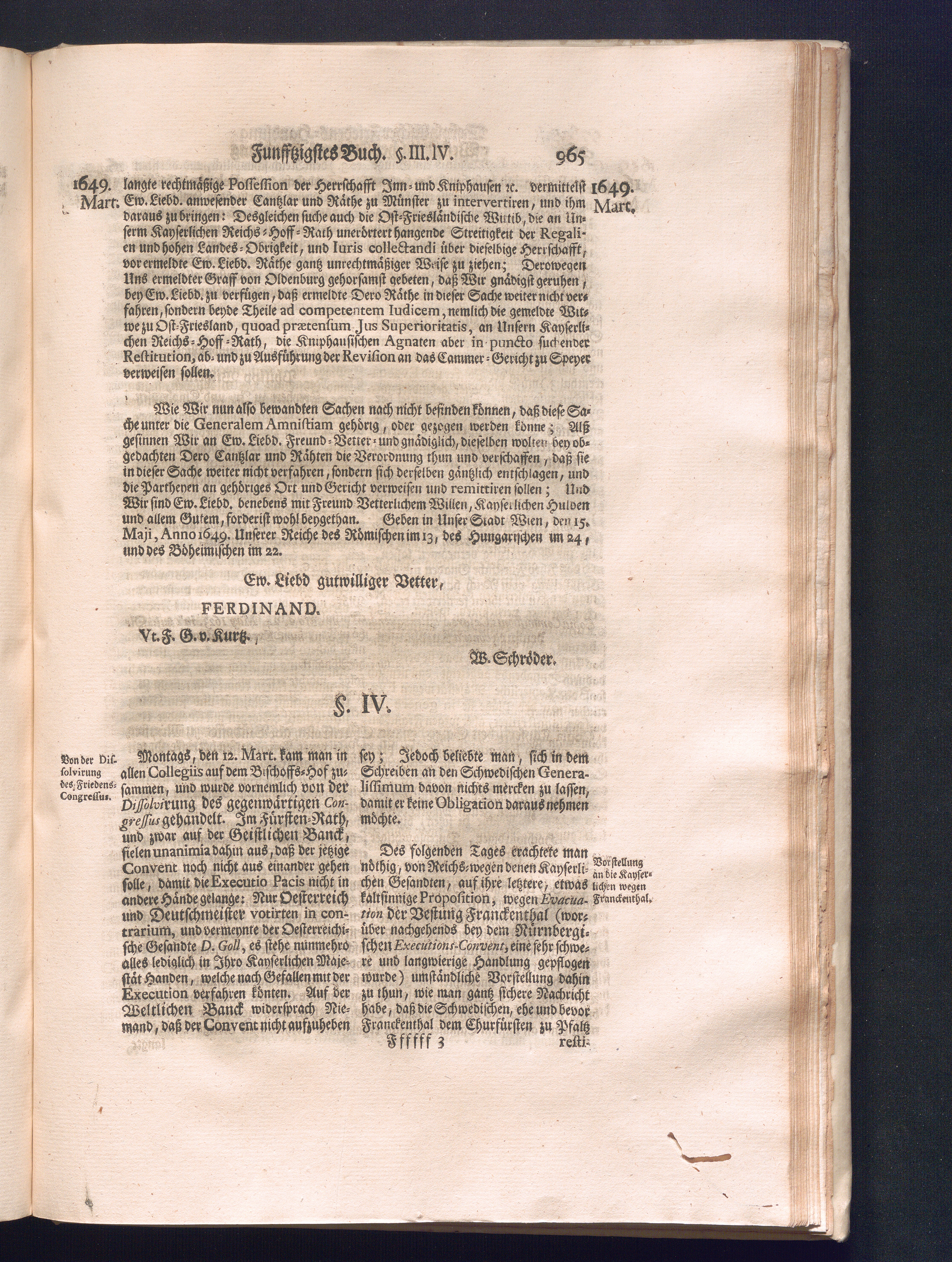 Sechster Theil (1736) Worinnen enthalten ist, was vom Monath Junio des Jahrs 1648. biß zu dem, im Jahr 1649. völlig erfolgten Schluß und Ende des Universal-Friedens-Congressus zu Oßnabrück und Münster, gehandelt und geschlossen worden