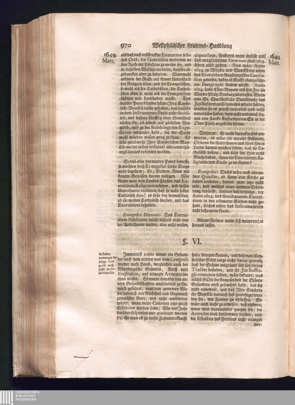 Sechster Theil (1736) Worinnen enthalten ist, was vom Monath Junio des Jahrs 1648. biß zu dem, im Jahr 1649. völlig erfolgten Schluß und Ende des Universal-Friedens-Congressus zu Oßnabrück und Münster, gehandelt und geschlossen worden