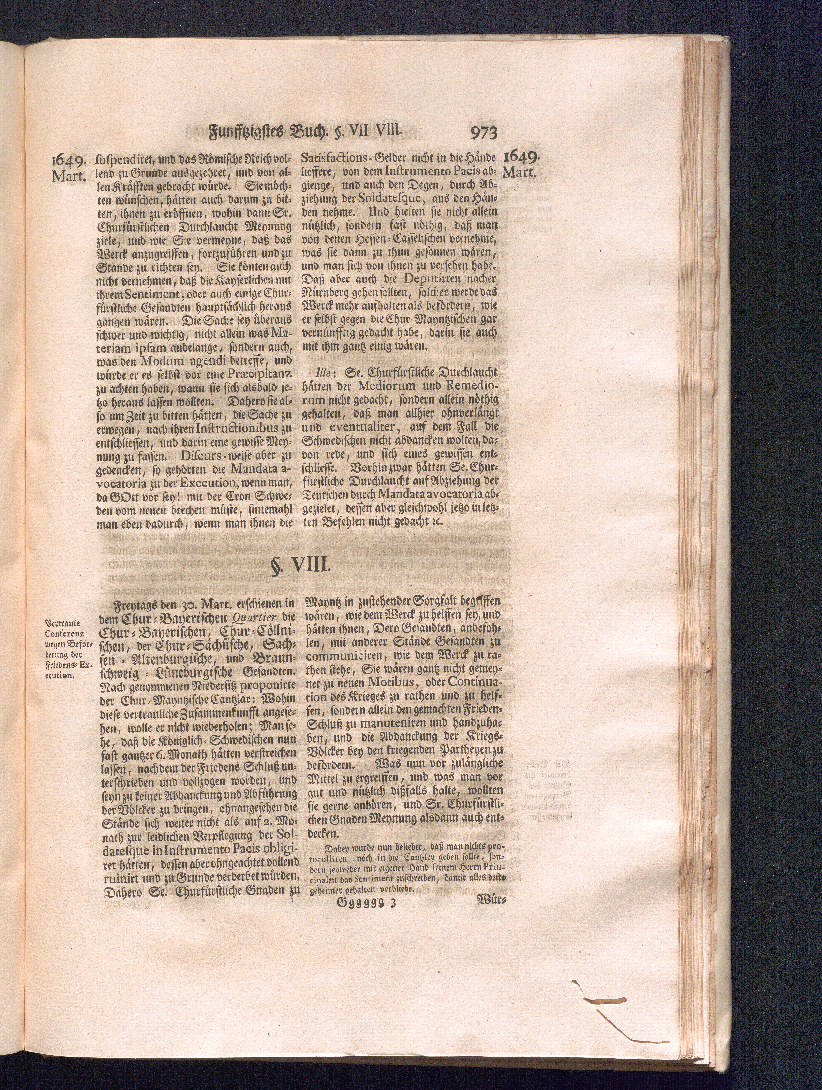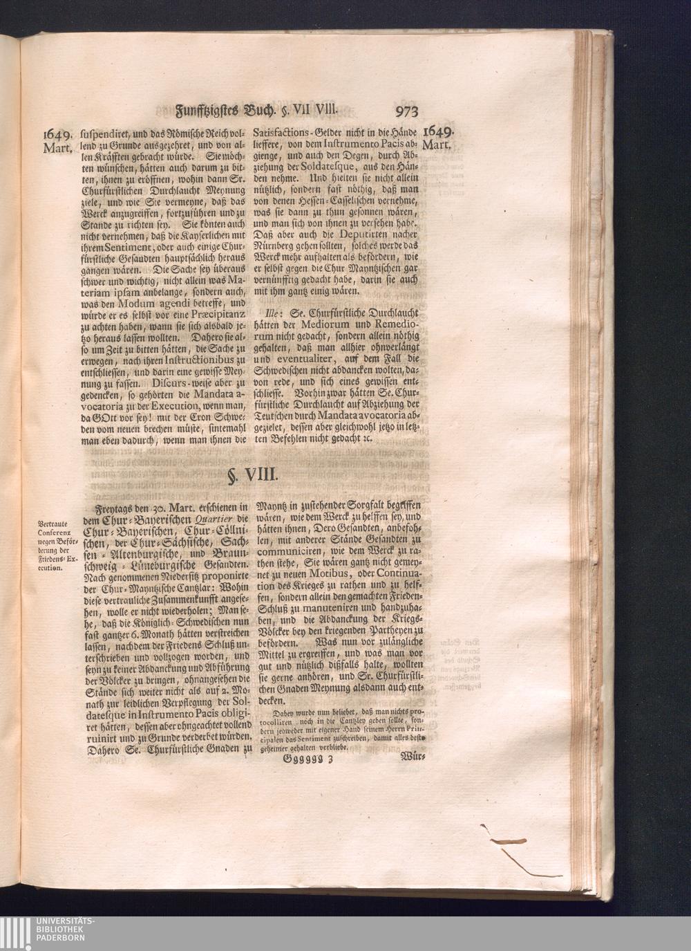 Sechster Theil (1736) Worinnen enthalten ist, was vom Monath Junio des Jahrs 1648. biß zu dem, im Jahr 1649. völlig erfolgten Schluß und Ende des Universal-Friedens-Congressus zu Oßnabrück und Münster, gehandelt und geschlossen worden