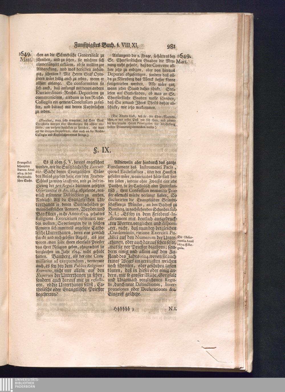Sechster Theil (1736) Worinnen enthalten ist, was vom Monath Junio des Jahrs 1648. biß zu dem, im Jahr 1649. völlig erfolgten Schluß und Ende des Universal-Friedens-Congressus zu Oßnabrück und Münster, gehandelt und geschlossen worden