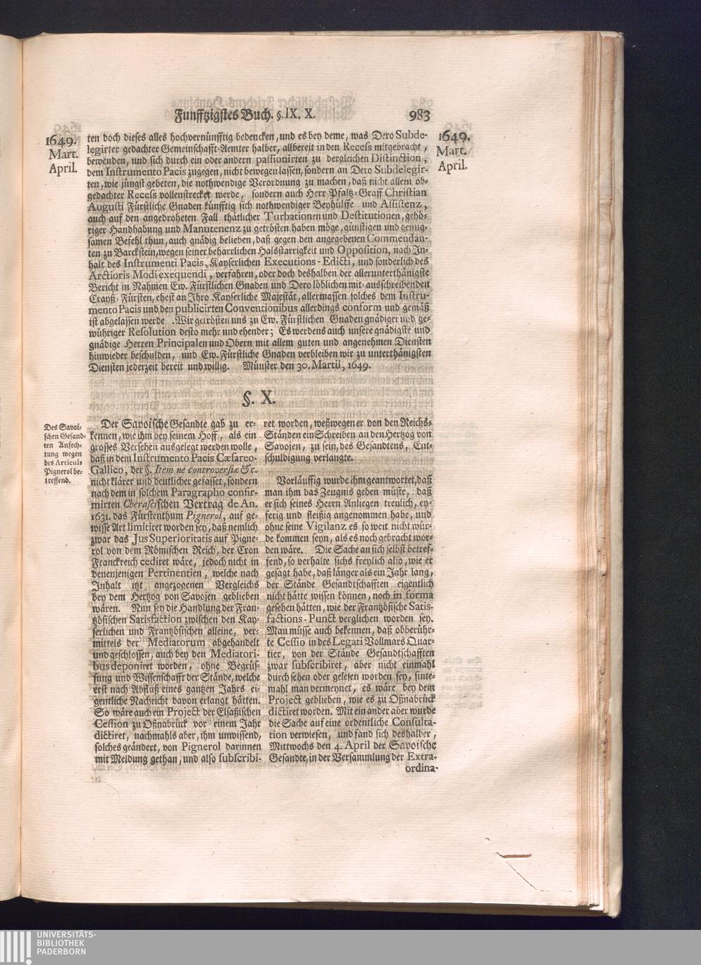 Sechster Theil (1736) Worinnen enthalten ist, was vom Monath Junio des Jahrs 1648. biß zu dem, im Jahr 1649. völlig erfolgten Schluß und Ende des Universal-Friedens-Congressus zu Oßnabrück und Münster, gehandelt und geschlossen worden