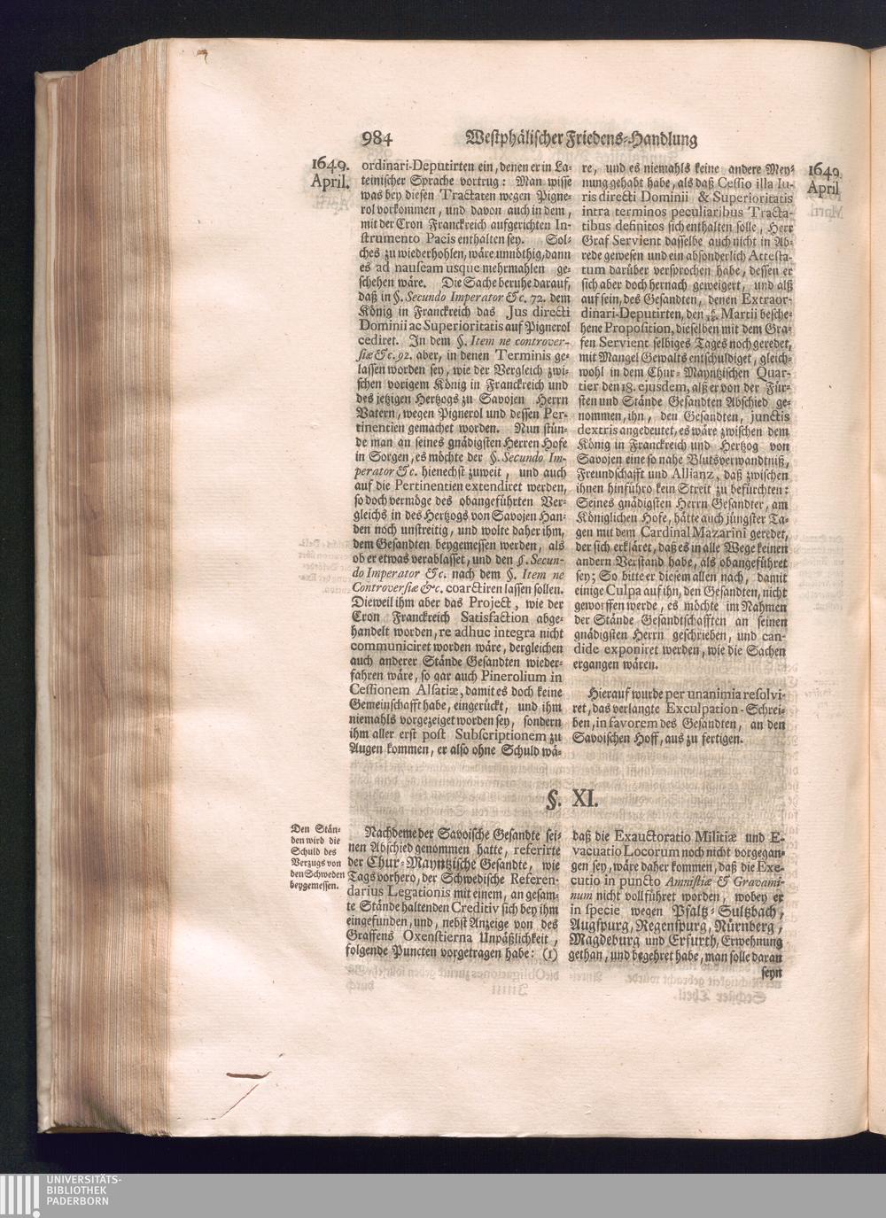Sechster Theil (1736) Worinnen enthalten ist, was vom Monath Junio des Jahrs 1648. biß zu dem, im Jahr 1649. völlig erfolgten Schluß und Ende des Universal-Friedens-Congressus zu Oßnabrück und Münster, gehandelt und geschlossen worden