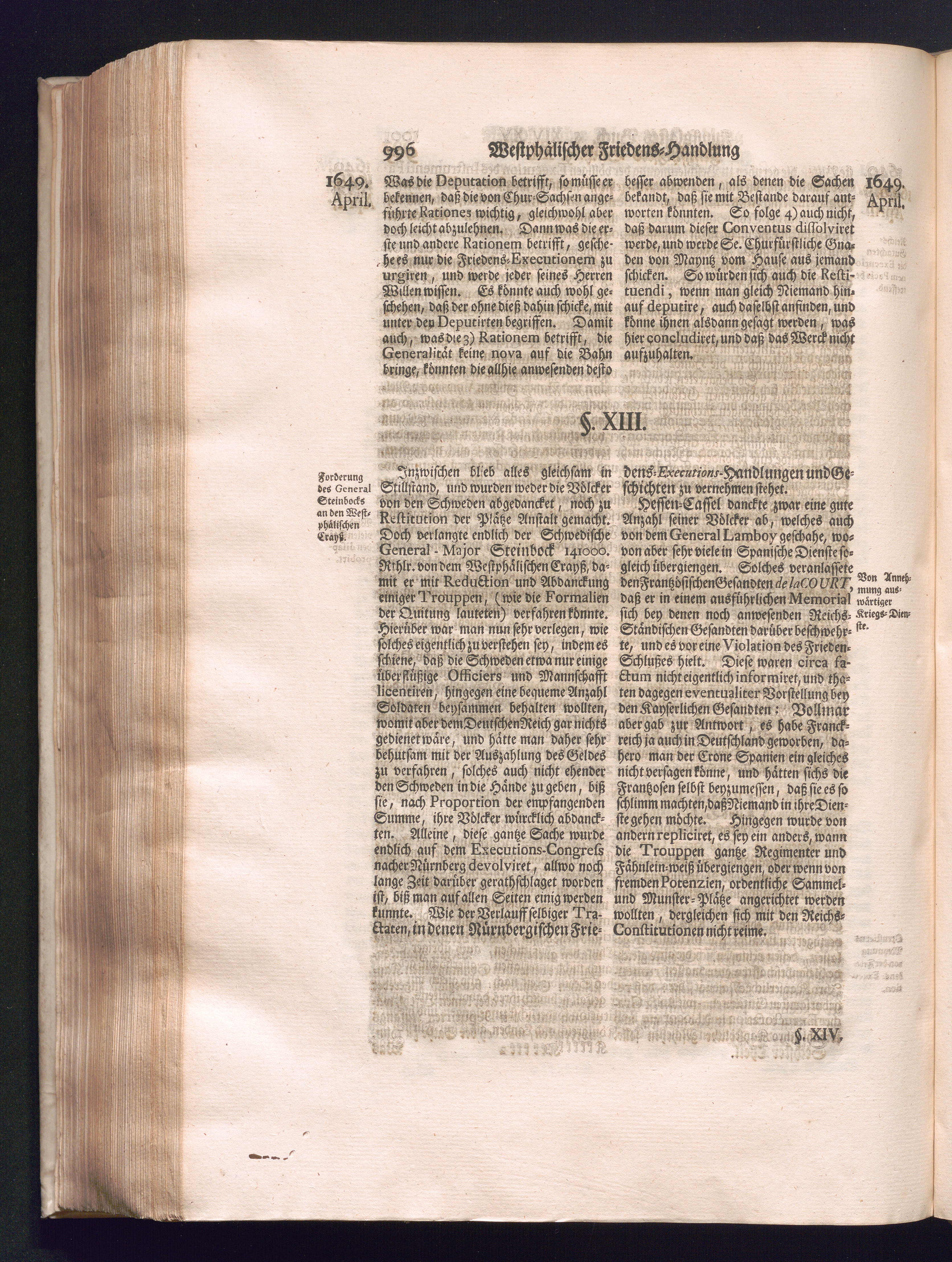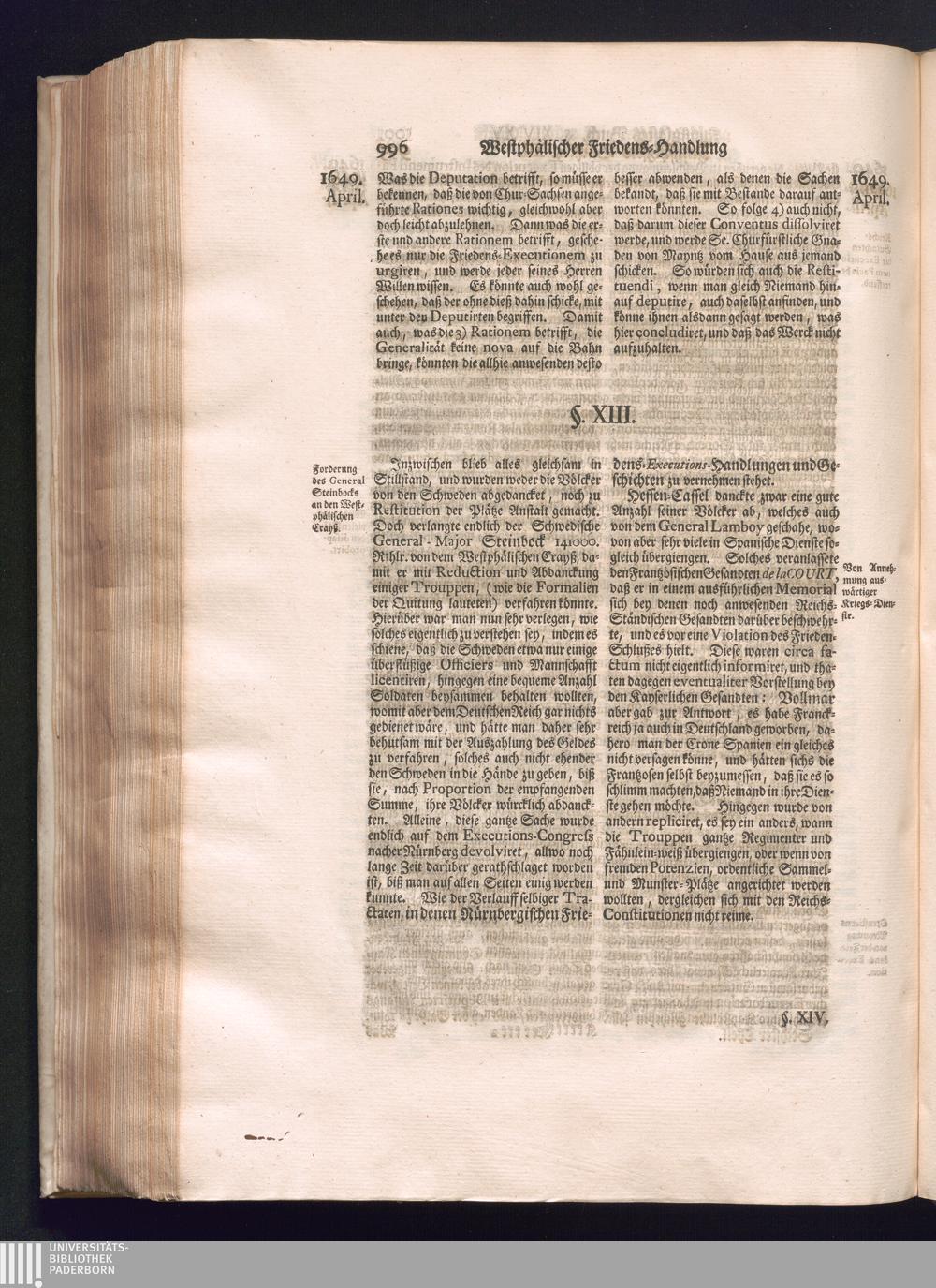Sechster Theil (1736) Worinnen enthalten ist, was vom Monath Junio des Jahrs 1648. biß zu dem, im Jahr 1649. völlig erfolgten Schluß und Ende des Universal-Friedens-Congressus zu Oßnabrück und Münster, gehandelt und geschlossen worden