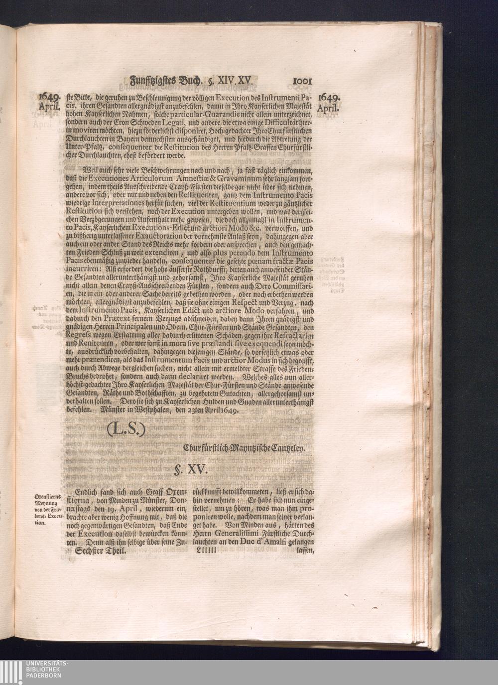 Sechster Theil (1736) Worinnen enthalten ist, was vom Monath Junio des Jahrs 1648. biß zu dem, im Jahr 1649. völlig erfolgten Schluß und Ende des Universal-Friedens-Congressus zu Oßnabrück und Münster, gehandelt und geschlossen worden