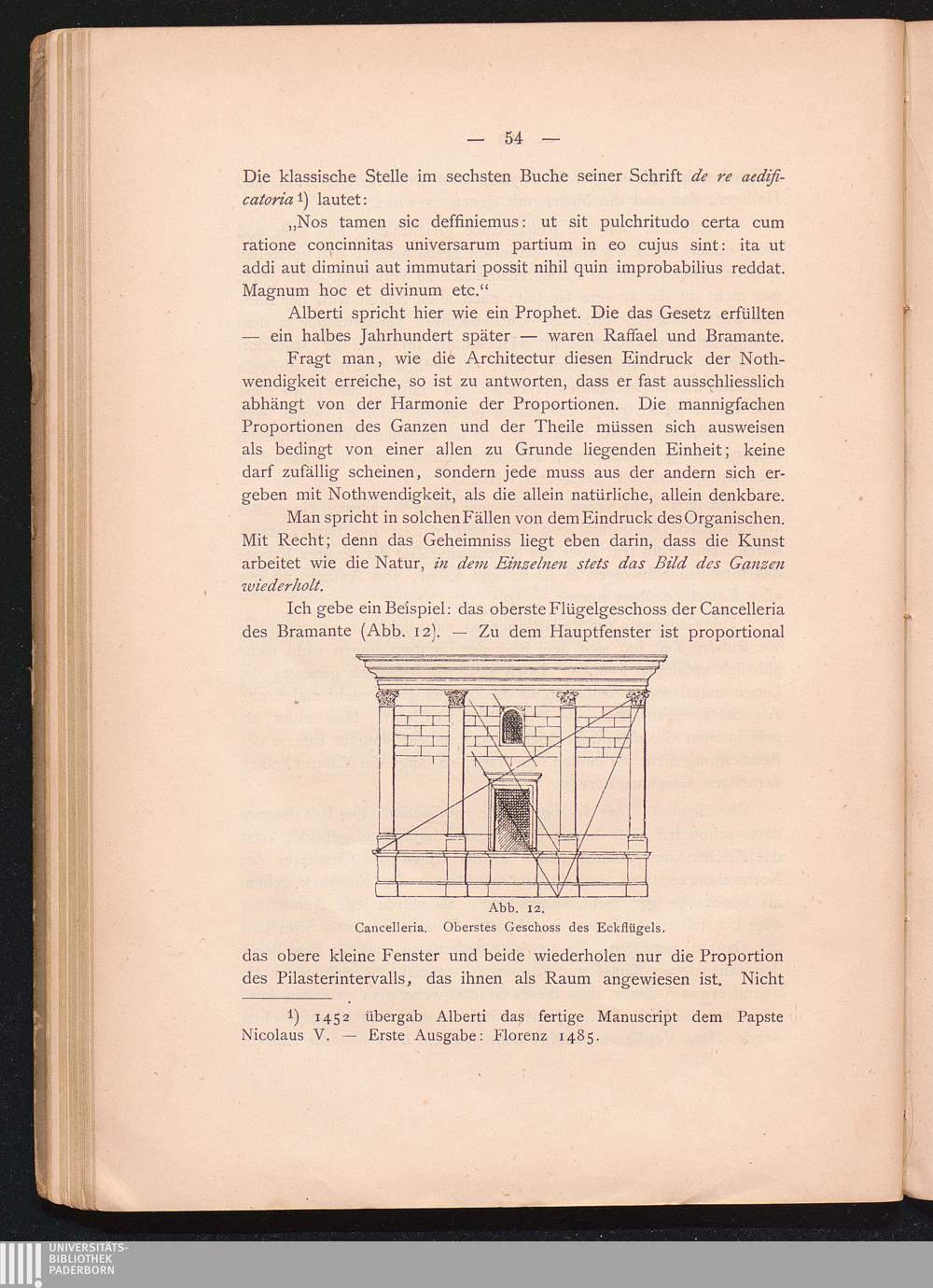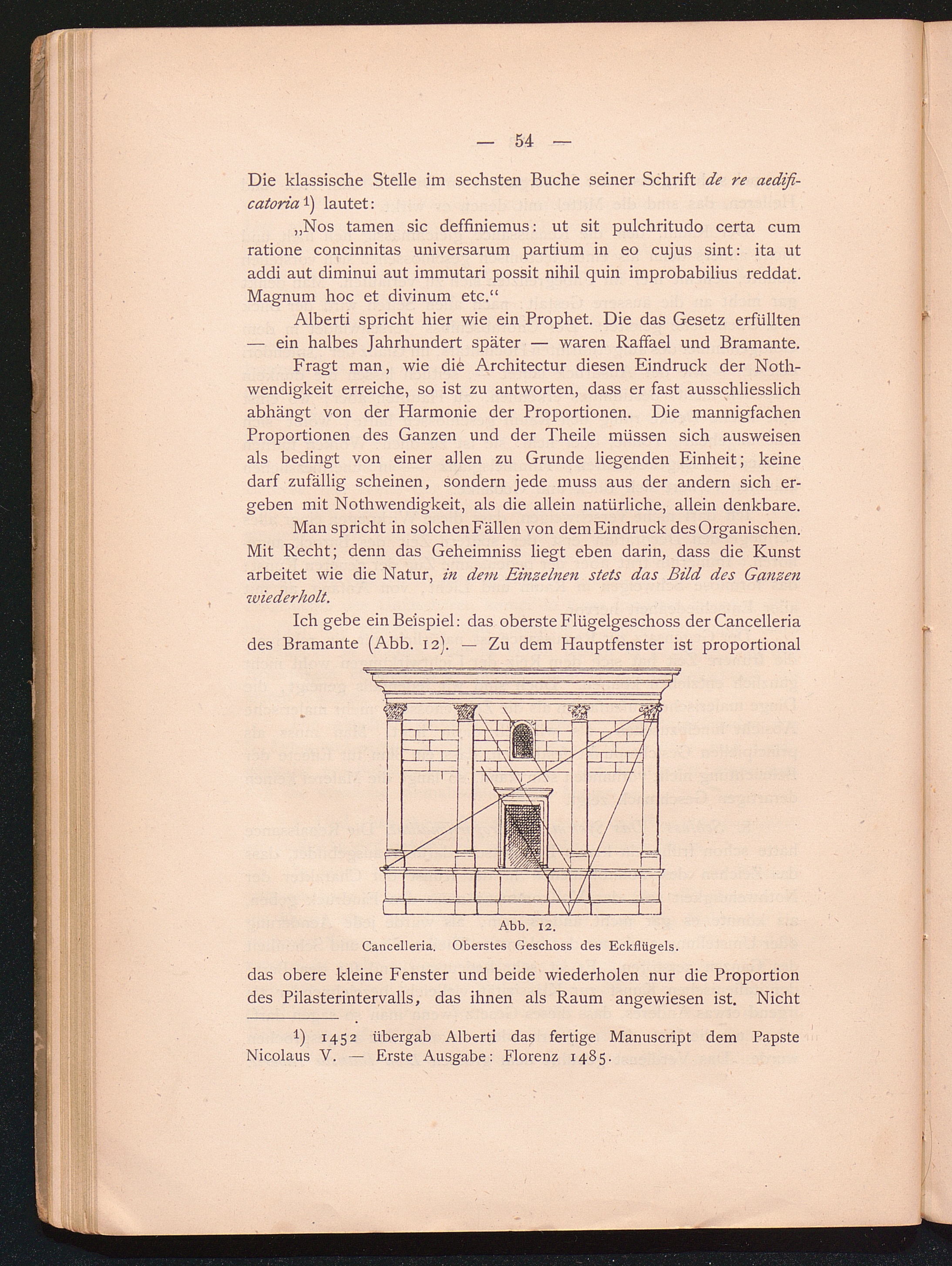 Abb. 12. Cancelleria. Oberstes Geschoss des Eckflügels (Proportionalität der Ren[...]