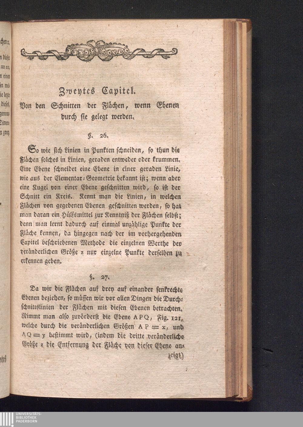 Zweytes Capitel. Von den Schnitten der Flächen, wenn Ebenen durch sie gelegt wer[...]