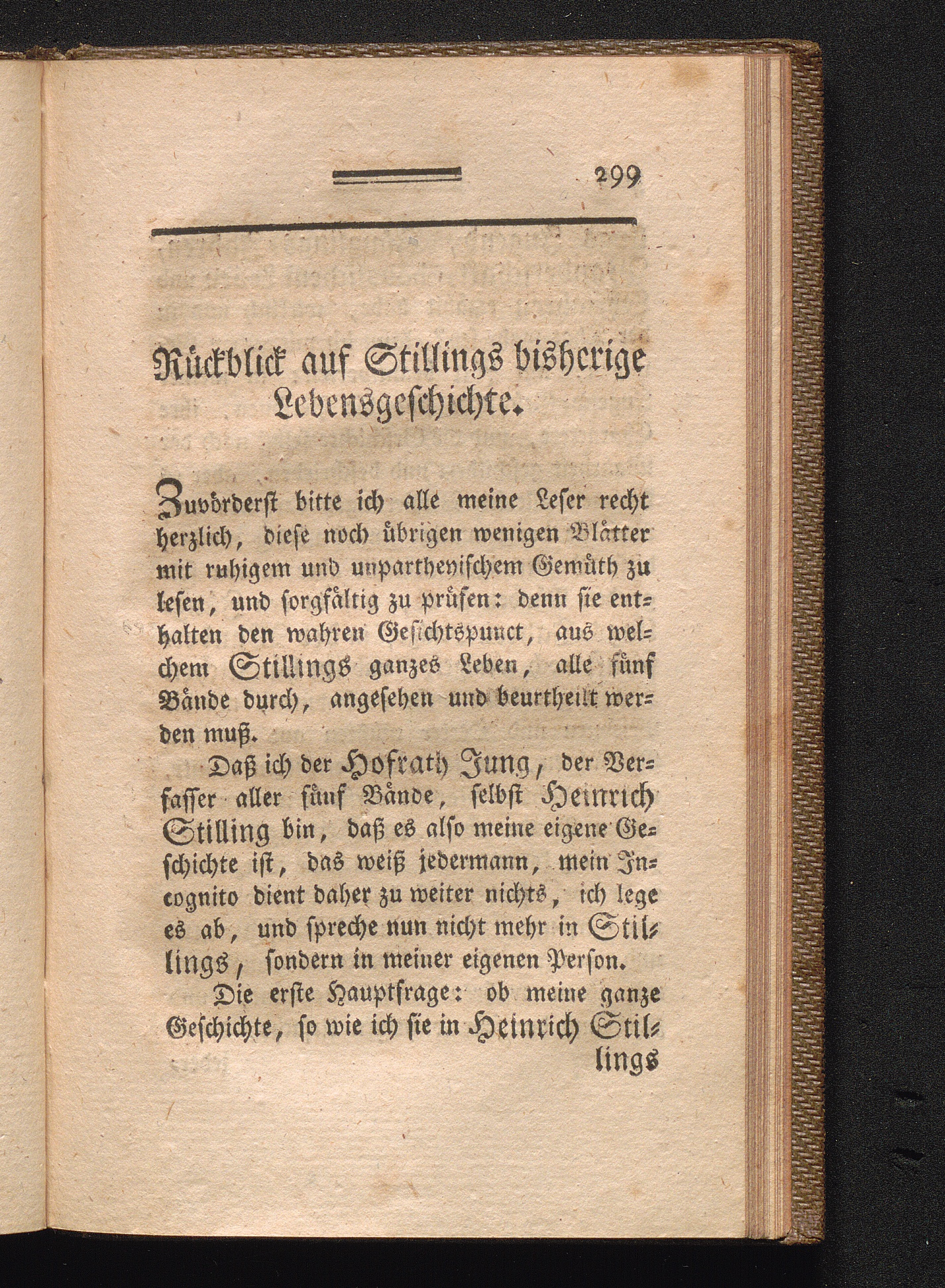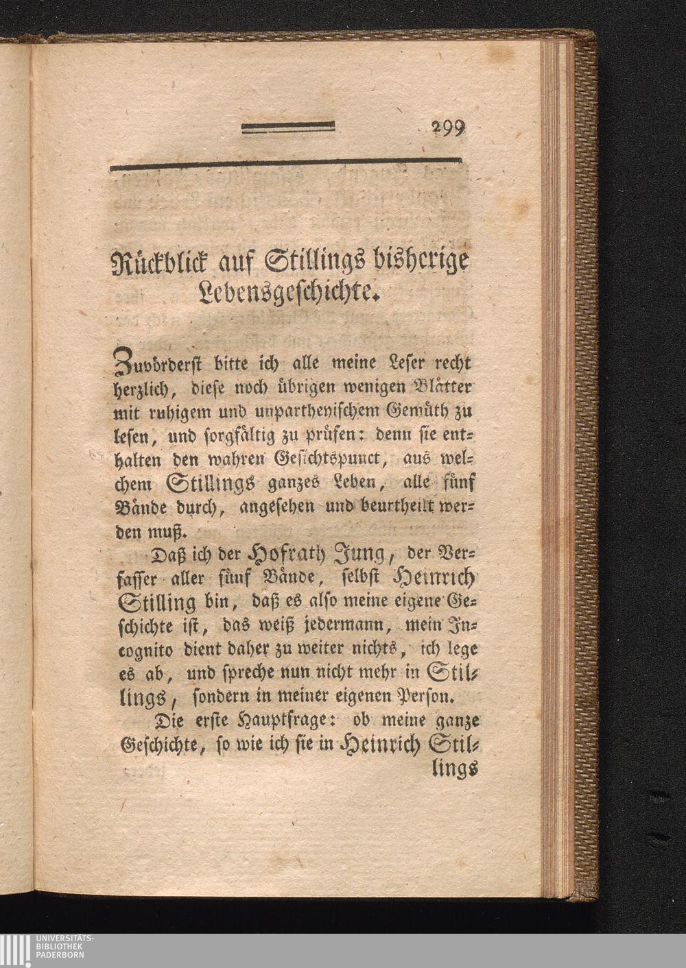Rückblick auf Stillings bisherige Lebensgeschichte.
