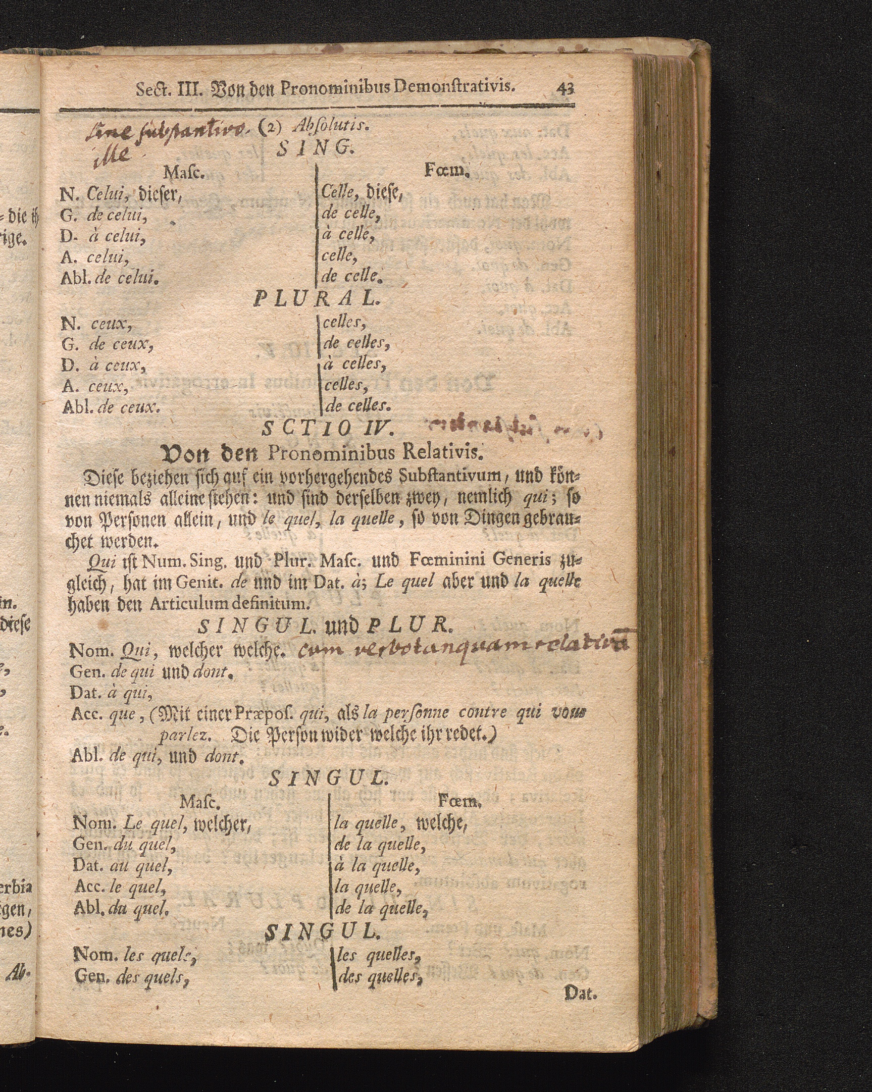 La Parfaite Grammaire Royale Françoise & Allemande, Das ist: Vollkomene Königl. Frantz. Teutsche Grammatica, : Mit neuen und sehr nützlichen Reguln, Nebst einem verbesserten Wörter-Buche, manierlichen Gesprächen und zierlichen Redens Arten, auserlesenen Sprüchen, artigen Historien und sinnreichen Einfällen, anmuthigen und nach ietziger Zeit wohlgesetzen Briefen / verfasset vom Hrn. des Pepliers, Acad. Mitgliede