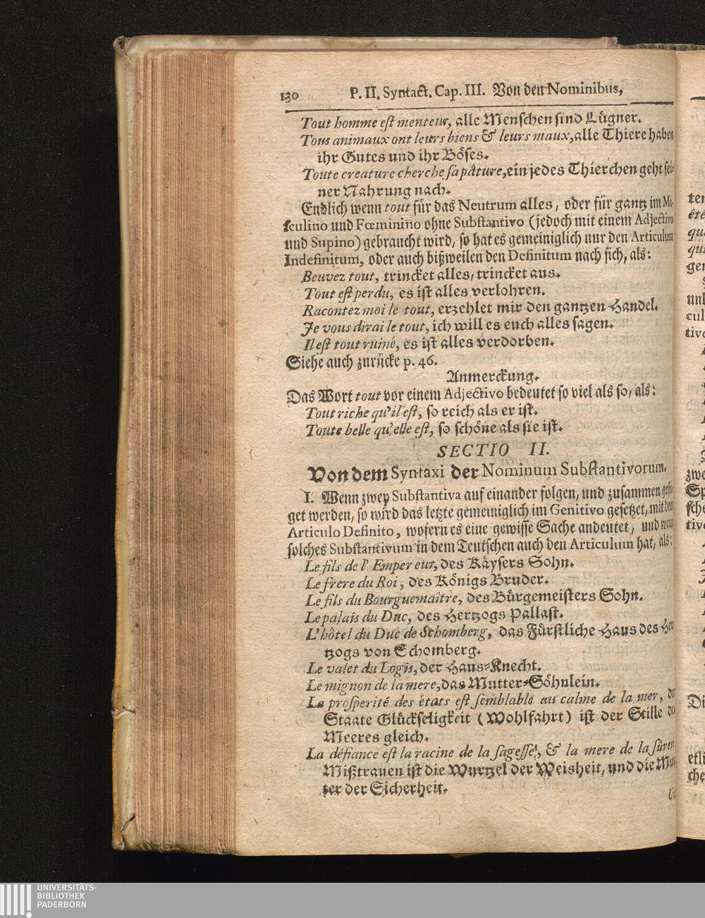 La Parfaite Grammaire Royale Françoise & Allemande, Das ist: Vollkomene Königl. Frantz. Teutsche Grammatica, : Mit neuen und sehr nützlichen Reguln, Nebst einem verbesserten Wörter-Buche, manierlichen Gesprächen und zierlichen Redens Arten, auserlesenen Sprüchen, artigen Historien und sinnreichen Einfällen, anmuthigen und nach ietziger Zeit wohlgesetzen Briefen / verfasset vom Hrn. des Pepliers, Acad. Mitgliede