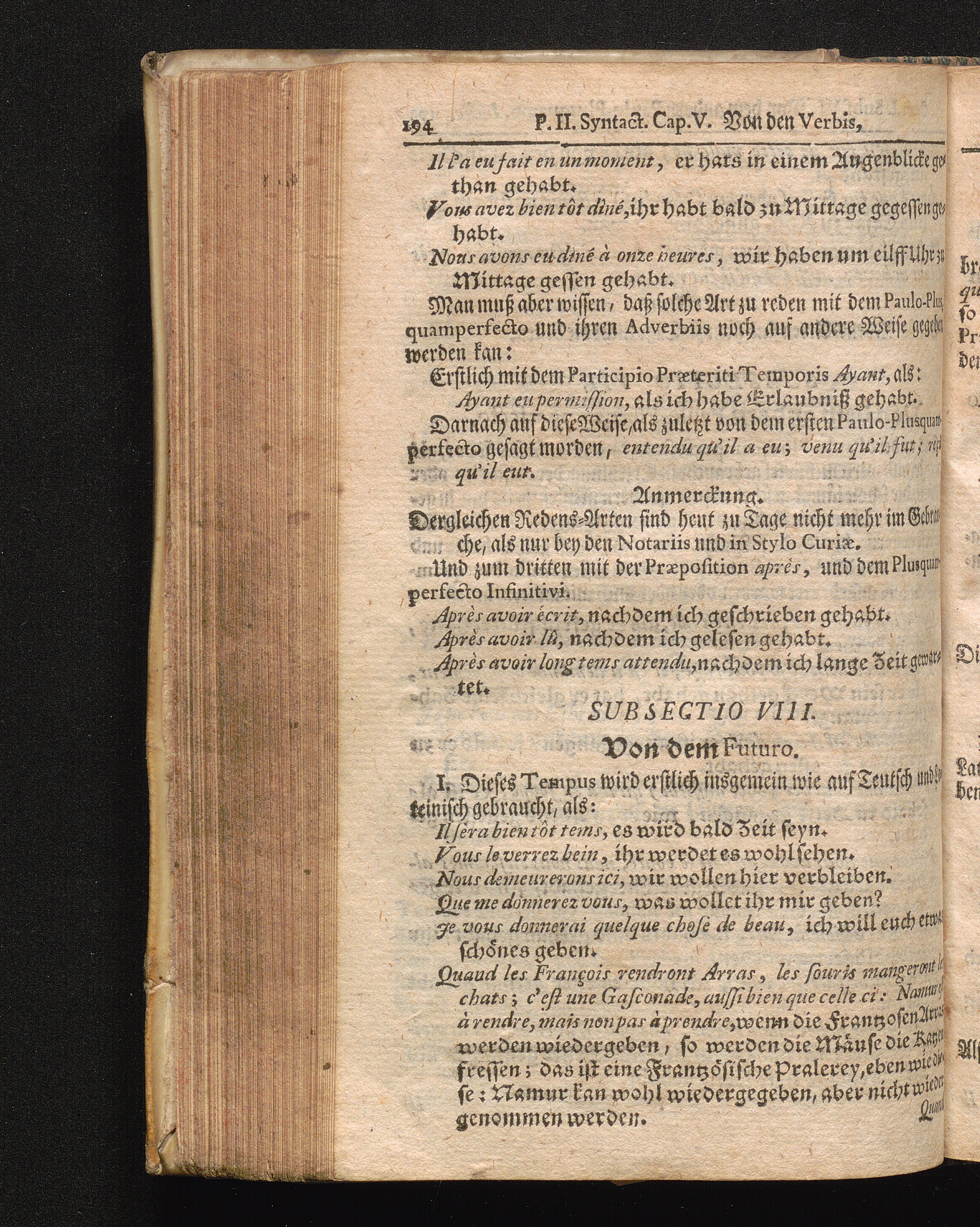 La Parfaite Grammaire Royale Françoise & Allemande, Das ist: Vollkomene Königl. Frantz. Teutsche Grammatica, : Mit neuen und sehr nützlichen Reguln, Nebst einem verbesserten Wörter-Buche, manierlichen Gesprächen und zierlichen Redens Arten, auserlesenen Sprüchen, artigen Historien und sinnreichen Einfällen, anmuthigen und nach ietziger Zeit wohlgesetzen Briefen / verfasset vom Hrn. des Pepliers, Acad. Mitgliede