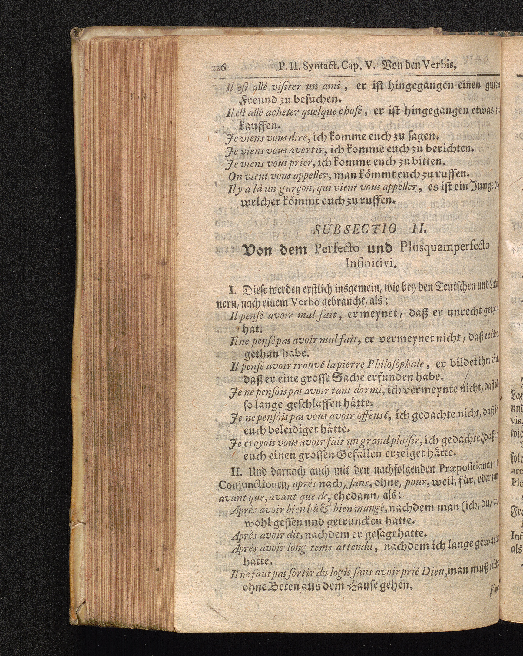 La Parfaite Grammaire Royale Françoise & Allemande, Das ist: Vollkomene Königl. Frantz. Teutsche Grammatica, : Mit neuen und sehr nützlichen Reguln, Nebst einem verbesserten Wörter-Buche, manierlichen Gesprächen und zierlichen Redens Arten, auserlesenen Sprüchen, artigen Historien und sinnreichen Einfällen, anmuthigen und nach ietziger Zeit wohlgesetzen Briefen / verfasset vom Hrn. des Pepliers, Acad. Mitgliede