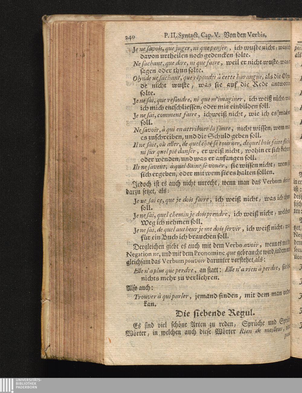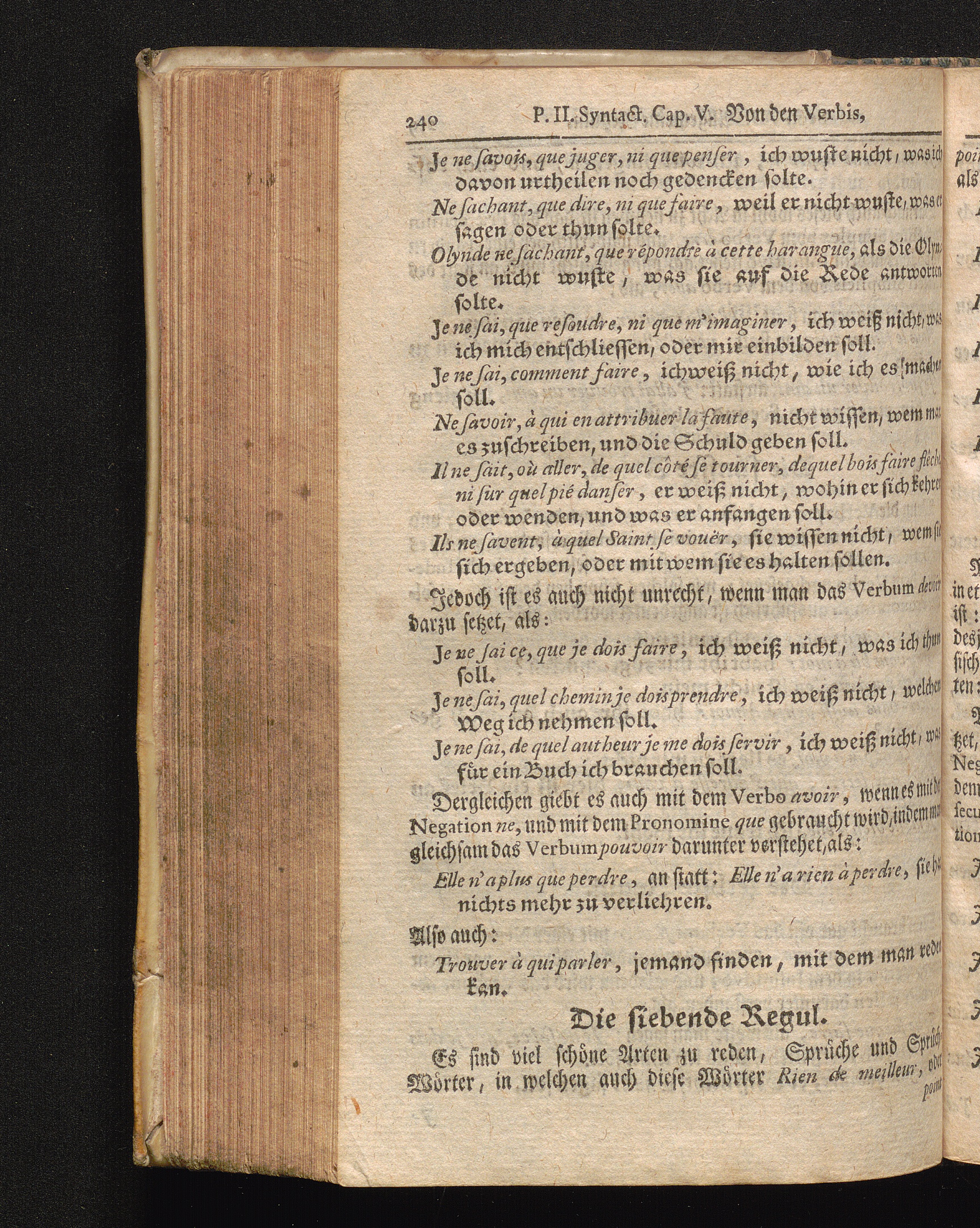 La Parfaite Grammaire Royale Françoise & Allemande, Das ist: Vollkomene Königl. Frantz. Teutsche Grammatica, : Mit neuen und sehr nützlichen Reguln, Nebst einem verbesserten Wörter-Buche, manierlichen Gesprächen und zierlichen Redens Arten, auserlesenen Sprüchen, artigen Historien und sinnreichen Einfällen, anmuthigen und nach ietziger Zeit wohlgesetzen Briefen / verfasset vom Hrn. des Pepliers, Acad. Mitgliede