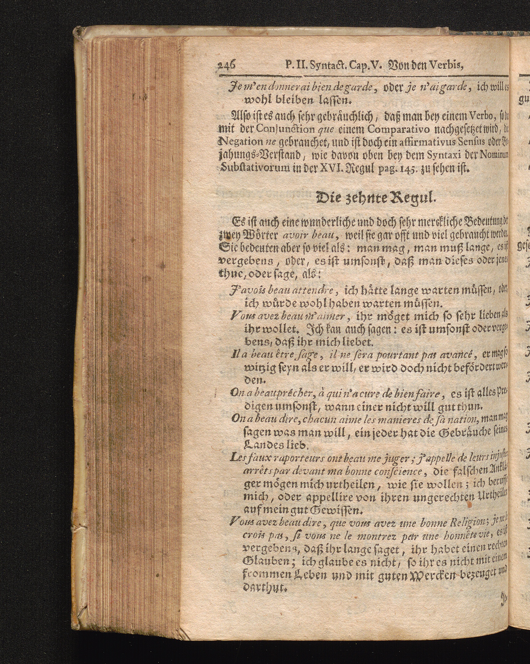 La Parfaite Grammaire Royale Françoise & Allemande, Das ist: Vollkomene Königl. Frantz. Teutsche Grammatica, : Mit neuen und sehr nützlichen Reguln, Nebst einem verbesserten Wörter-Buche, manierlichen Gesprächen und zierlichen Redens Arten, auserlesenen Sprüchen, artigen Historien und sinnreichen Einfällen, anmuthigen und nach ietziger Zeit wohlgesetzen Briefen / verfasset vom Hrn. des Pepliers, Acad. Mitgliede