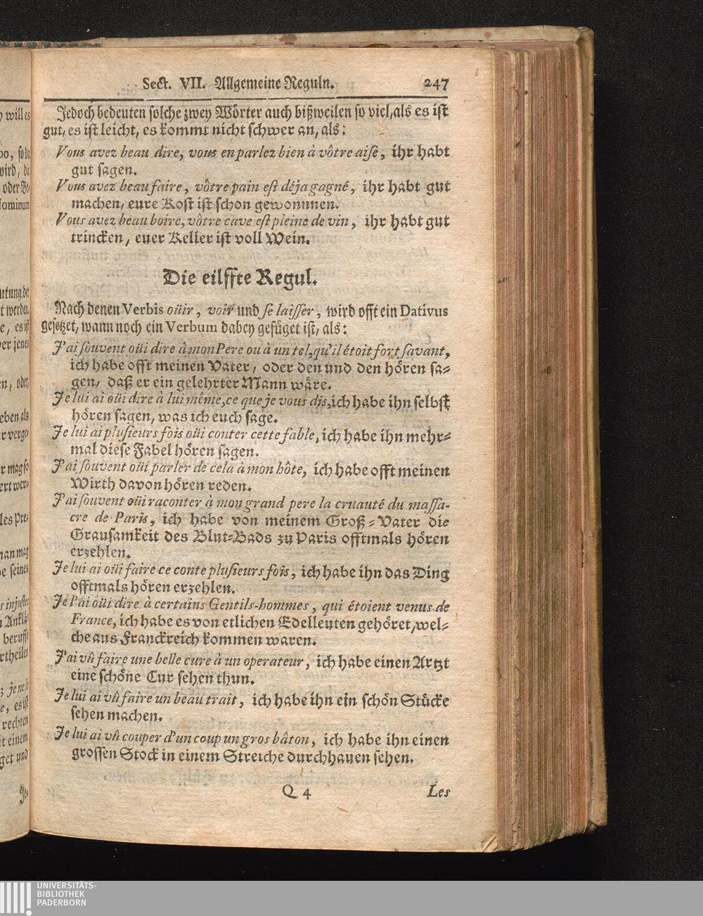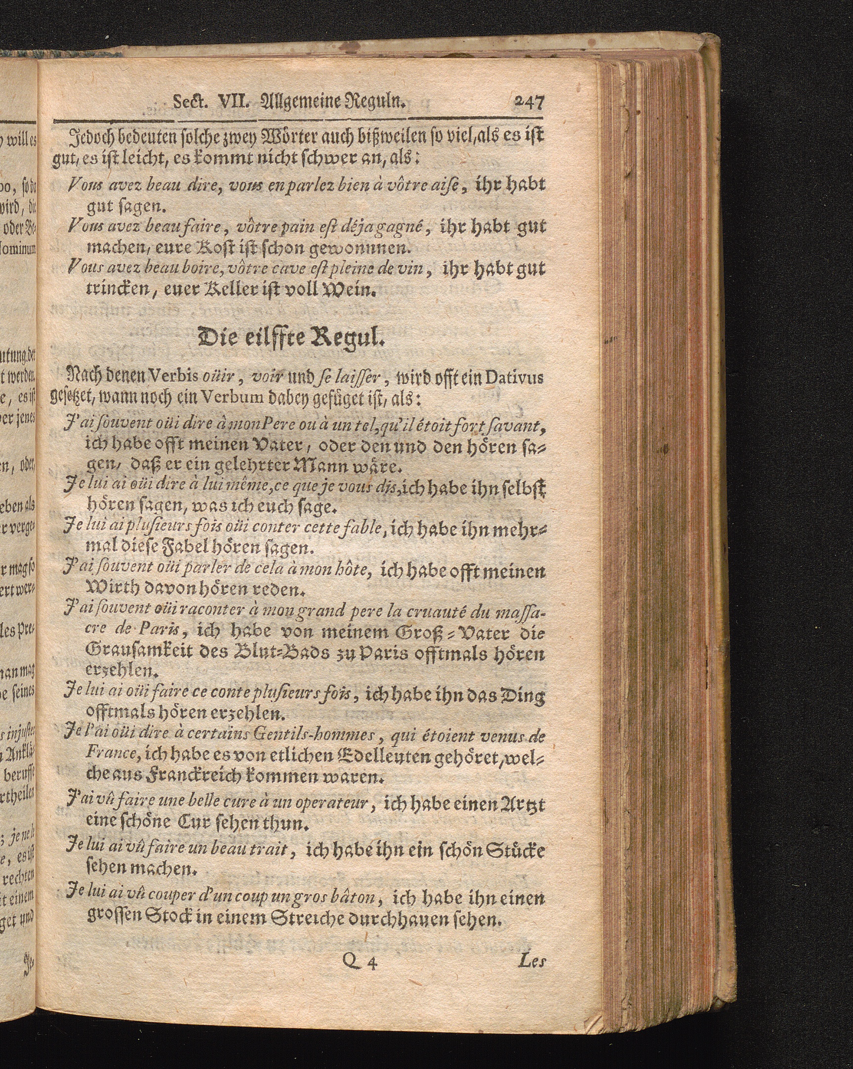La Parfaite Grammaire Royale Françoise & Allemande, Das ist: Vollkomene Königl. Frantz. Teutsche Grammatica, : Mit neuen und sehr nützlichen Reguln, Nebst einem verbesserten Wörter-Buche, manierlichen Gesprächen und zierlichen Redens Arten, auserlesenen Sprüchen, artigen Historien und sinnreichen Einfällen, anmuthigen und nach ietziger Zeit wohlgesetzen Briefen / verfasset vom Hrn. des Pepliers, Acad. Mitgliede