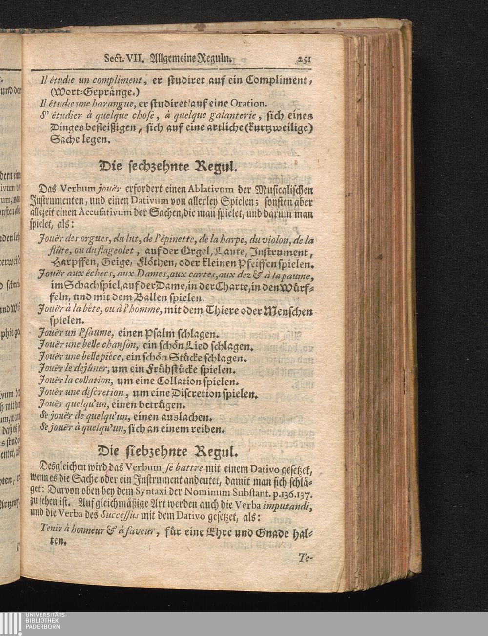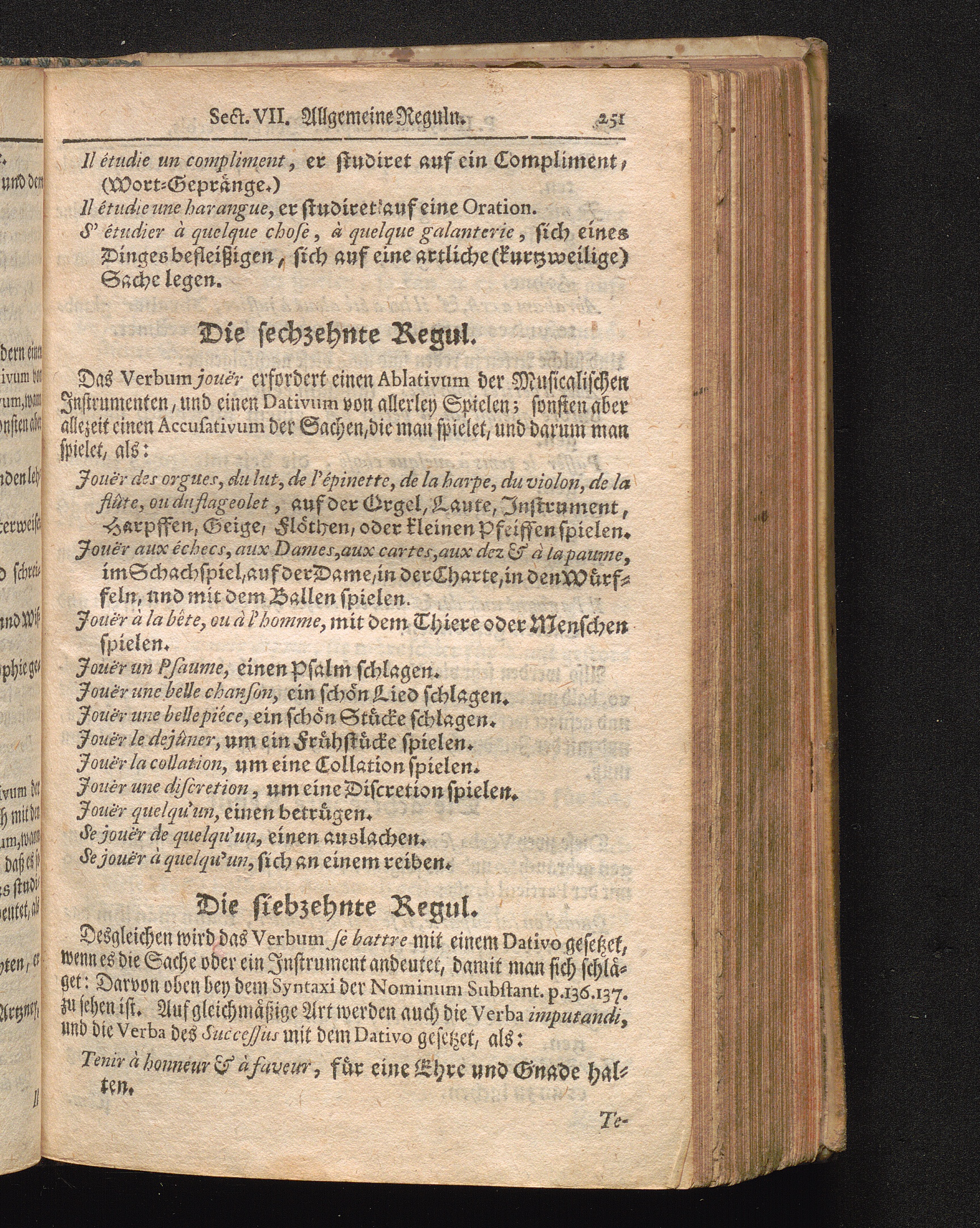 La Parfaite Grammaire Royale Françoise & Allemande, Das ist: Vollkomene Königl. Frantz. Teutsche Grammatica, : Mit neuen und sehr nützlichen Reguln, Nebst einem verbesserten Wörter-Buche, manierlichen Gesprächen und zierlichen Redens Arten, auserlesenen Sprüchen, artigen Historien und sinnreichen Einfällen, anmuthigen und nach ietziger Zeit wohlgesetzen Briefen / verfasset vom Hrn. des Pepliers, Acad. Mitgliede