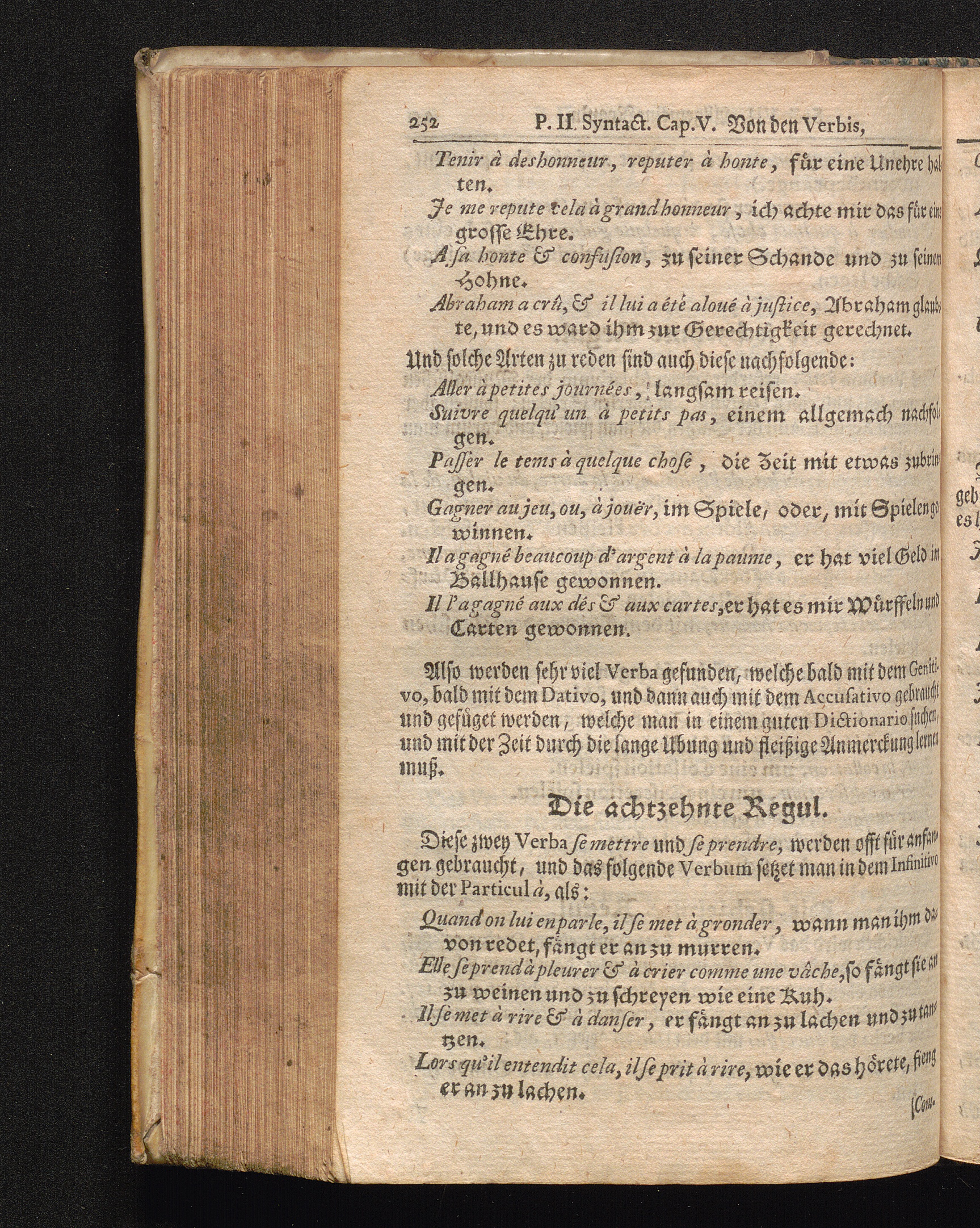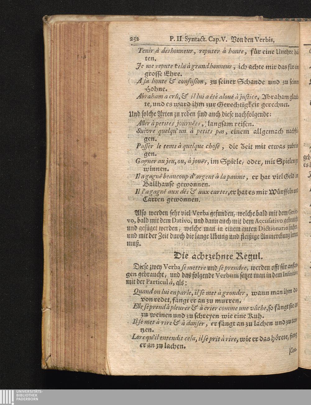 La Parfaite Grammaire Royale Françoise & Allemande, Das ist: Vollkomene Königl. Frantz. Teutsche Grammatica, : Mit neuen und sehr nützlichen Reguln, Nebst einem verbesserten Wörter-Buche, manierlichen Gesprächen und zierlichen Redens Arten, auserlesenen Sprüchen, artigen Historien und sinnreichen Einfällen, anmuthigen und nach ietziger Zeit wohlgesetzen Briefen / verfasset vom Hrn. des Pepliers, Acad. Mitgliede