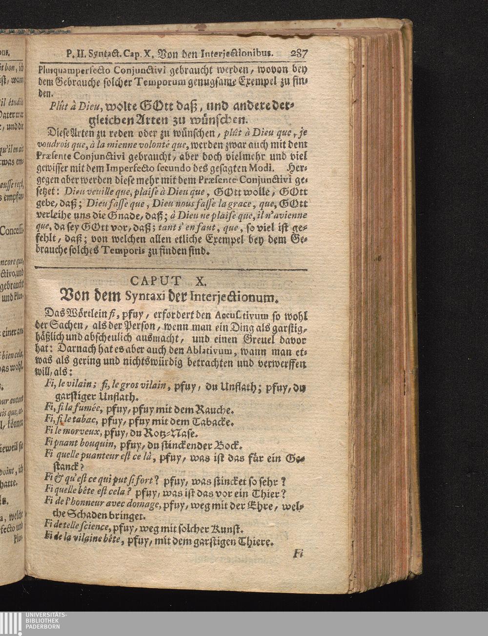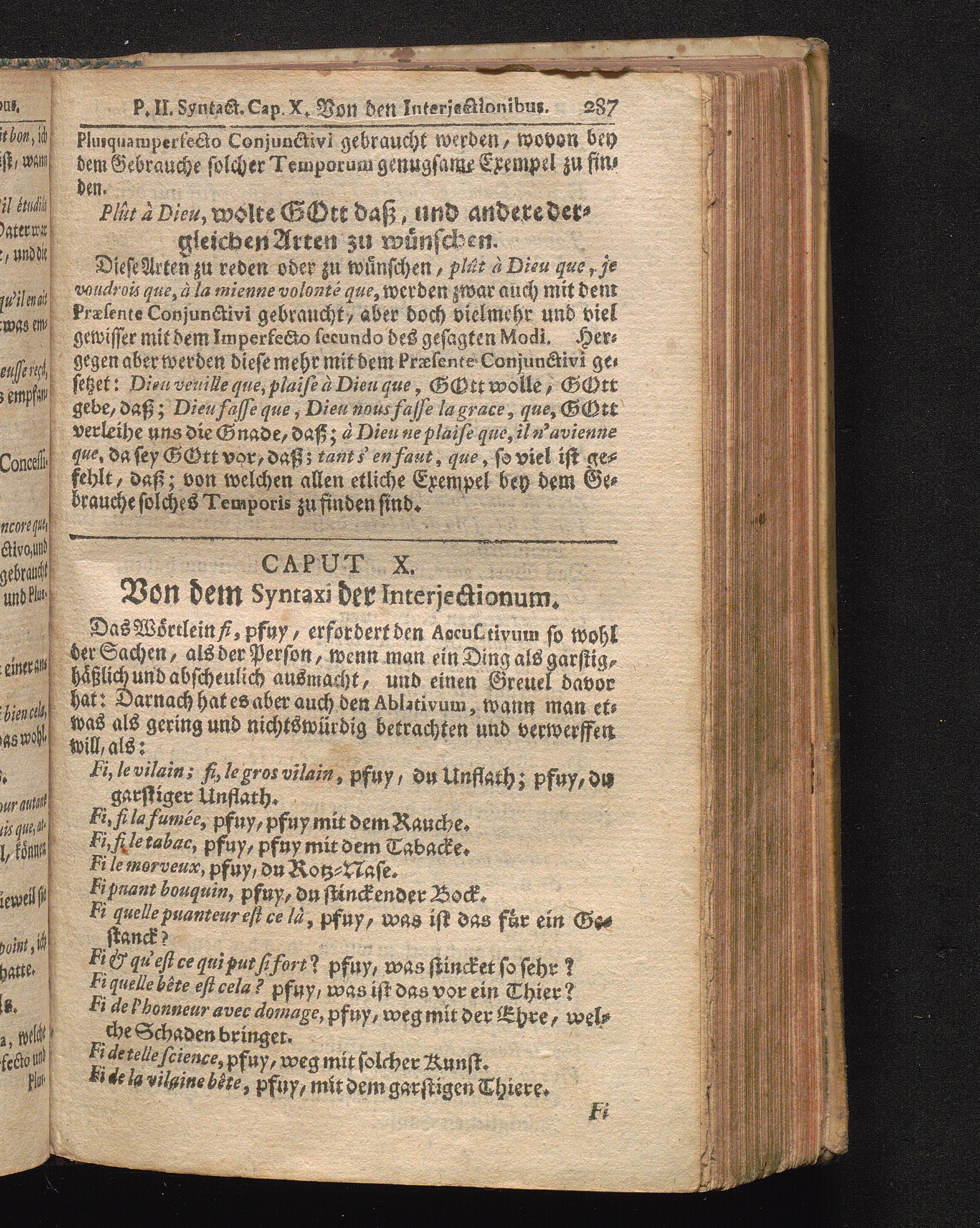 La Parfaite Grammaire Royale Françoise & Allemande, Das ist: Vollkomene Königl. Frantz. Teutsche Grammatica, : Mit neuen und sehr nützlichen Reguln, Nebst einem verbesserten Wörter-Buche, manierlichen Gesprächen und zierlichen Redens Arten, auserlesenen Sprüchen, artigen Historien und sinnreichen Einfällen, anmuthigen und nach ietziger Zeit wohlgesetzen Briefen / verfasset vom Hrn. des Pepliers, Acad. Mitgliede