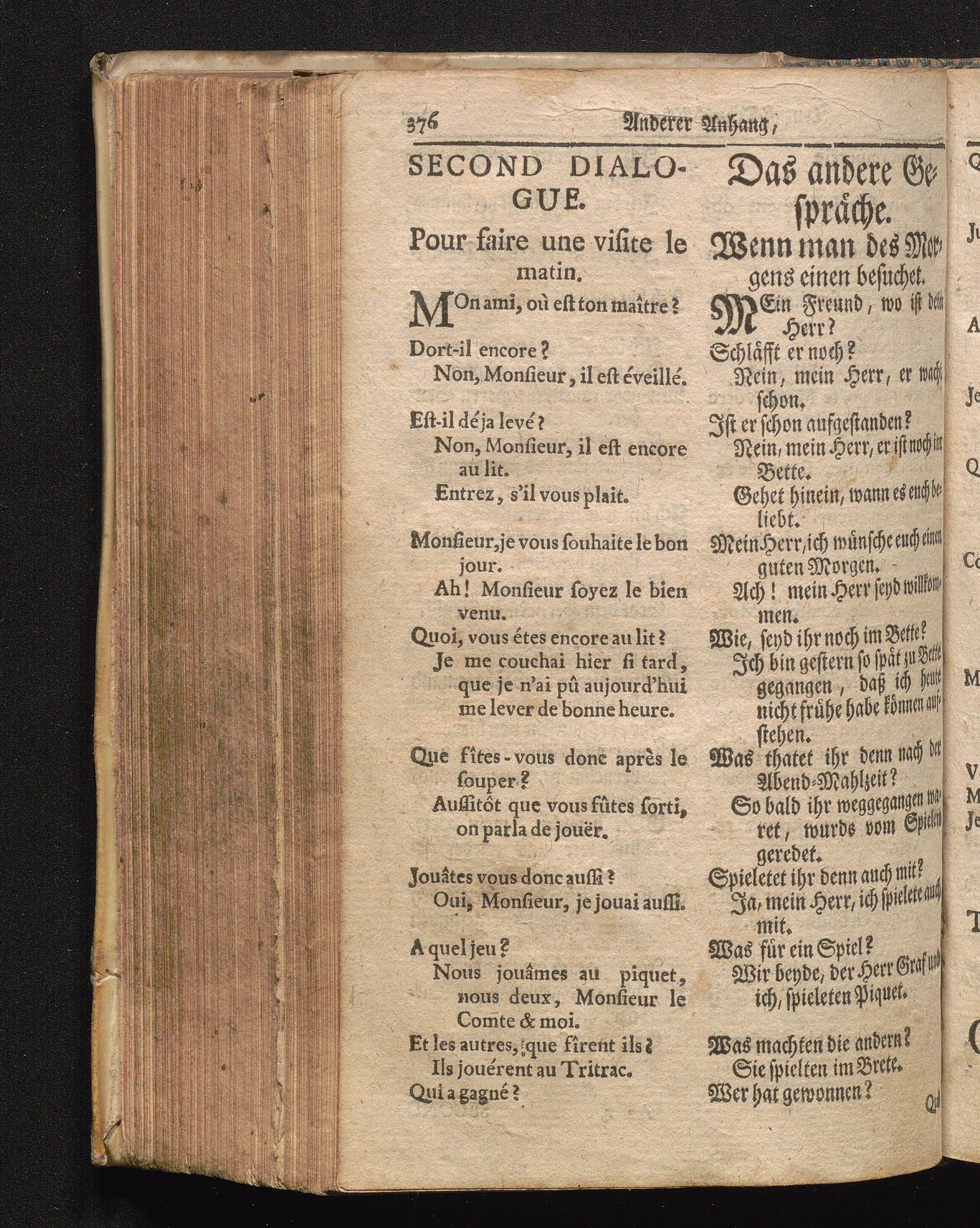 La Parfaite Grammaire Royale Françoise & Allemande, Das ist: Vollkomene Königl. Frantz. Teutsche Grammatica, : Mit neuen und sehr nützlichen Reguln, Nebst einem verbesserten Wörter-Buche, manierlichen Gesprächen und zierlichen Redens Arten, auserlesenen Sprüchen, artigen Historien und sinnreichen Einfällen, anmuthigen und nach ietziger Zeit wohlgesetzen Briefen / verfasset vom Hrn. des Pepliers, Acad. Mitgliede