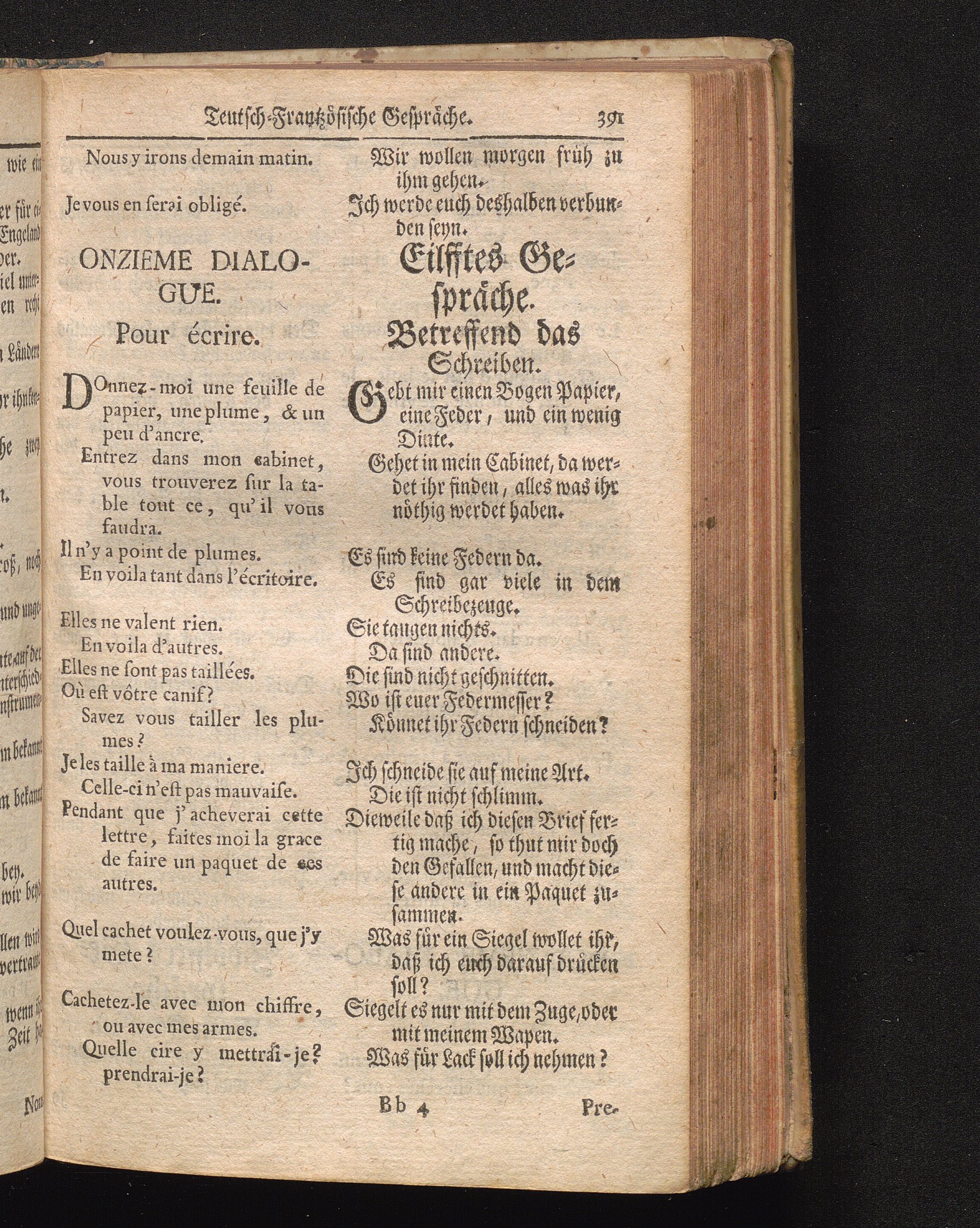 La Parfaite Grammaire Royale Françoise & Allemande, Das ist: Vollkomene Königl. Frantz. Teutsche Grammatica, : Mit neuen und sehr nützlichen Reguln, Nebst einem verbesserten Wörter-Buche, manierlichen Gesprächen und zierlichen Redens Arten, auserlesenen Sprüchen, artigen Historien und sinnreichen Einfällen, anmuthigen und nach ietziger Zeit wohlgesetzen Briefen / verfasset vom Hrn. des Pepliers, Acad. Mitgliede