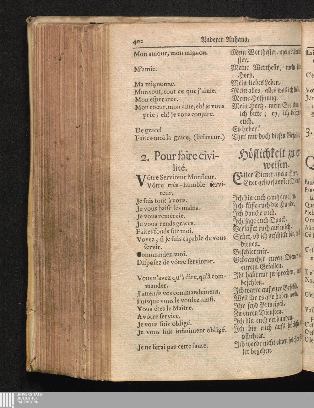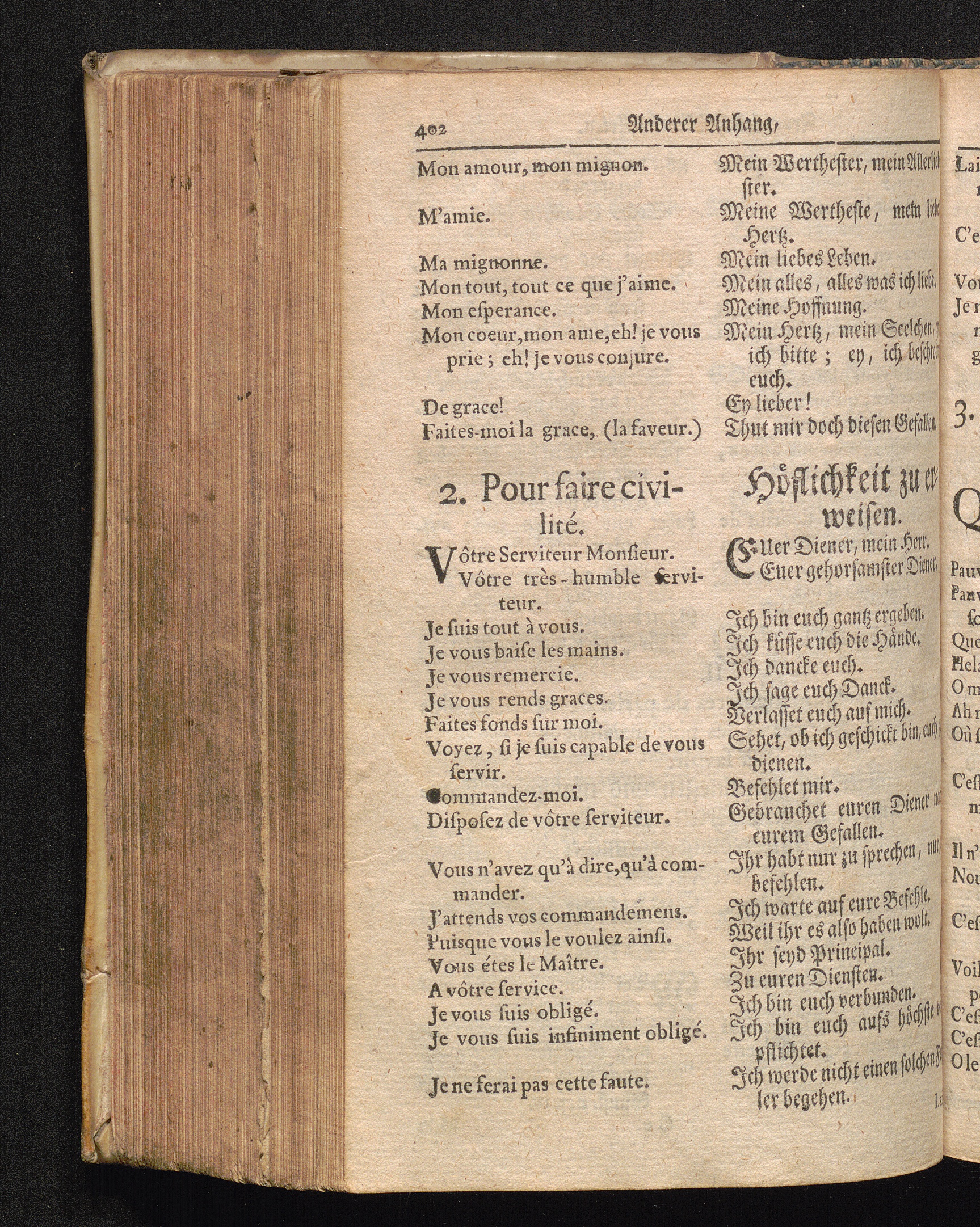 La Parfaite Grammaire Royale Françoise & Allemande, Das ist: Vollkomene Königl. Frantz. Teutsche Grammatica, : Mit neuen und sehr nützlichen Reguln, Nebst einem verbesserten Wörter-Buche, manierlichen Gesprächen und zierlichen Redens Arten, auserlesenen Sprüchen, artigen Historien und sinnreichen Einfällen, anmuthigen und nach ietziger Zeit wohlgesetzen Briefen / verfasset vom Hrn. des Pepliers, Acad. Mitgliede