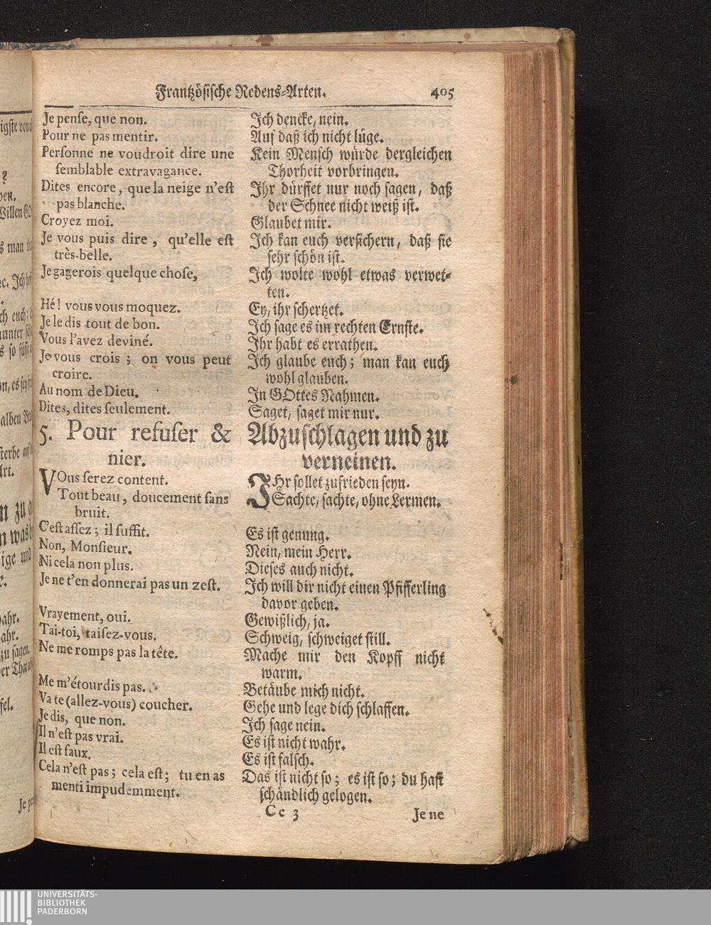 La Parfaite Grammaire Royale Françoise & Allemande, Das ist: Vollkomene Königl. Frantz. Teutsche Grammatica, : Mit neuen und sehr nützlichen Reguln, Nebst einem verbesserten Wörter-Buche, manierlichen Gesprächen und zierlichen Redens Arten, auserlesenen Sprüchen, artigen Historien und sinnreichen Einfällen, anmuthigen und nach ietziger Zeit wohlgesetzen Briefen / verfasset vom Hrn. des Pepliers, Acad. Mitgliede