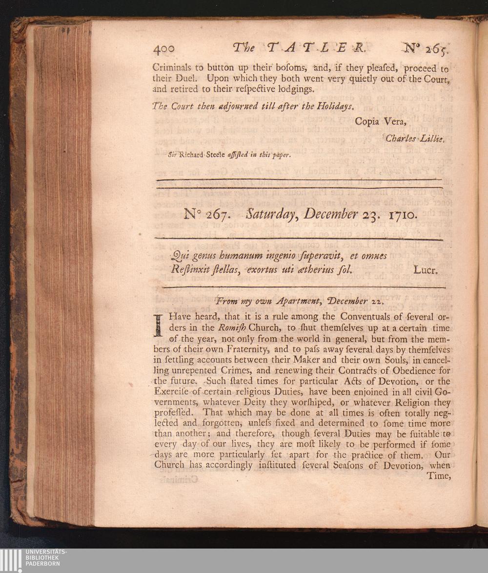 The Tatler. By Isaac Bickerstaffe, Esq;
