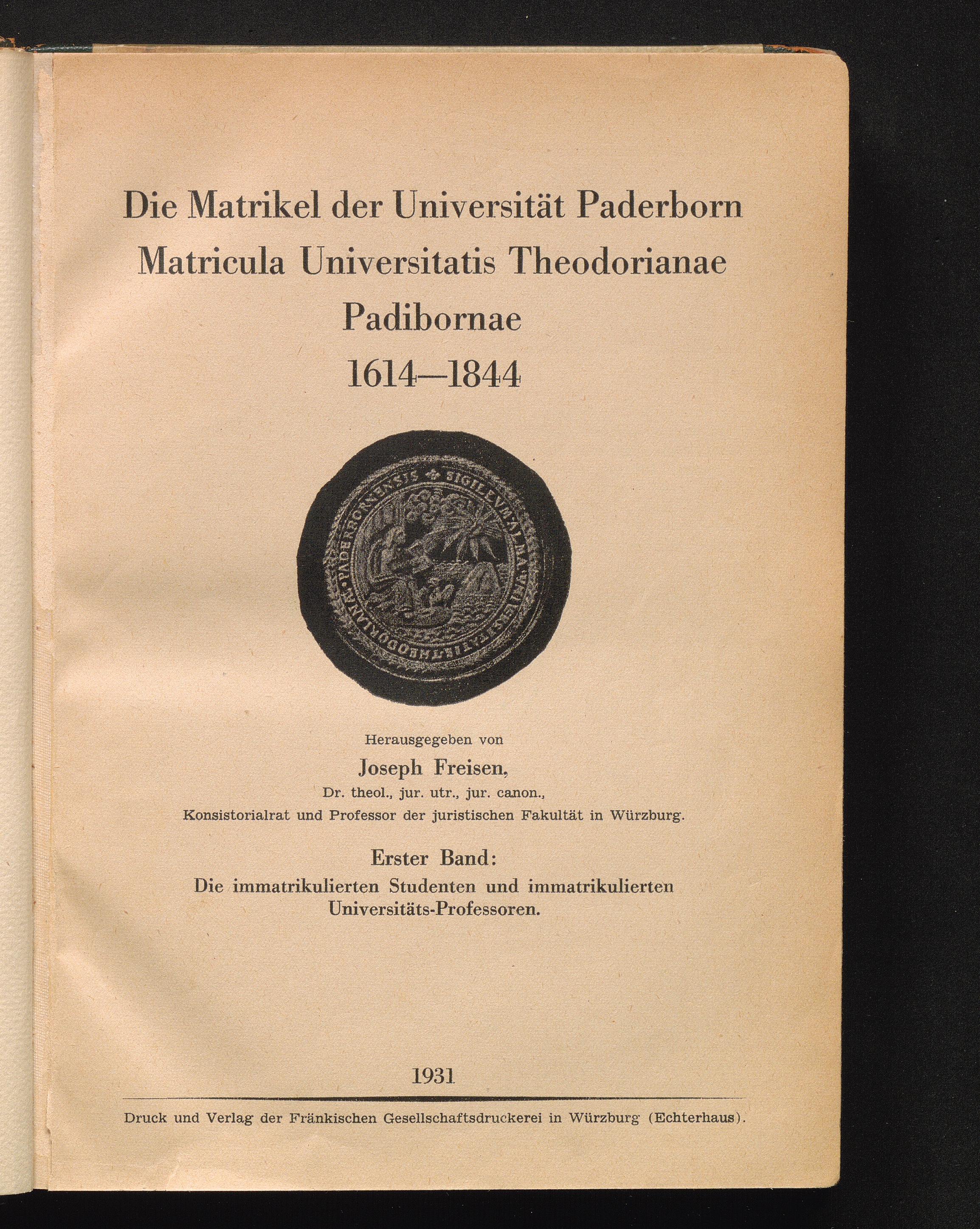 1 (1931) Die immatrikulierten Studenten und immatrikulierten Universitäts-Professoren