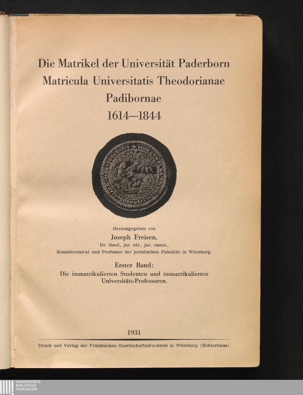 Die Matrikel der Universität Paderborn