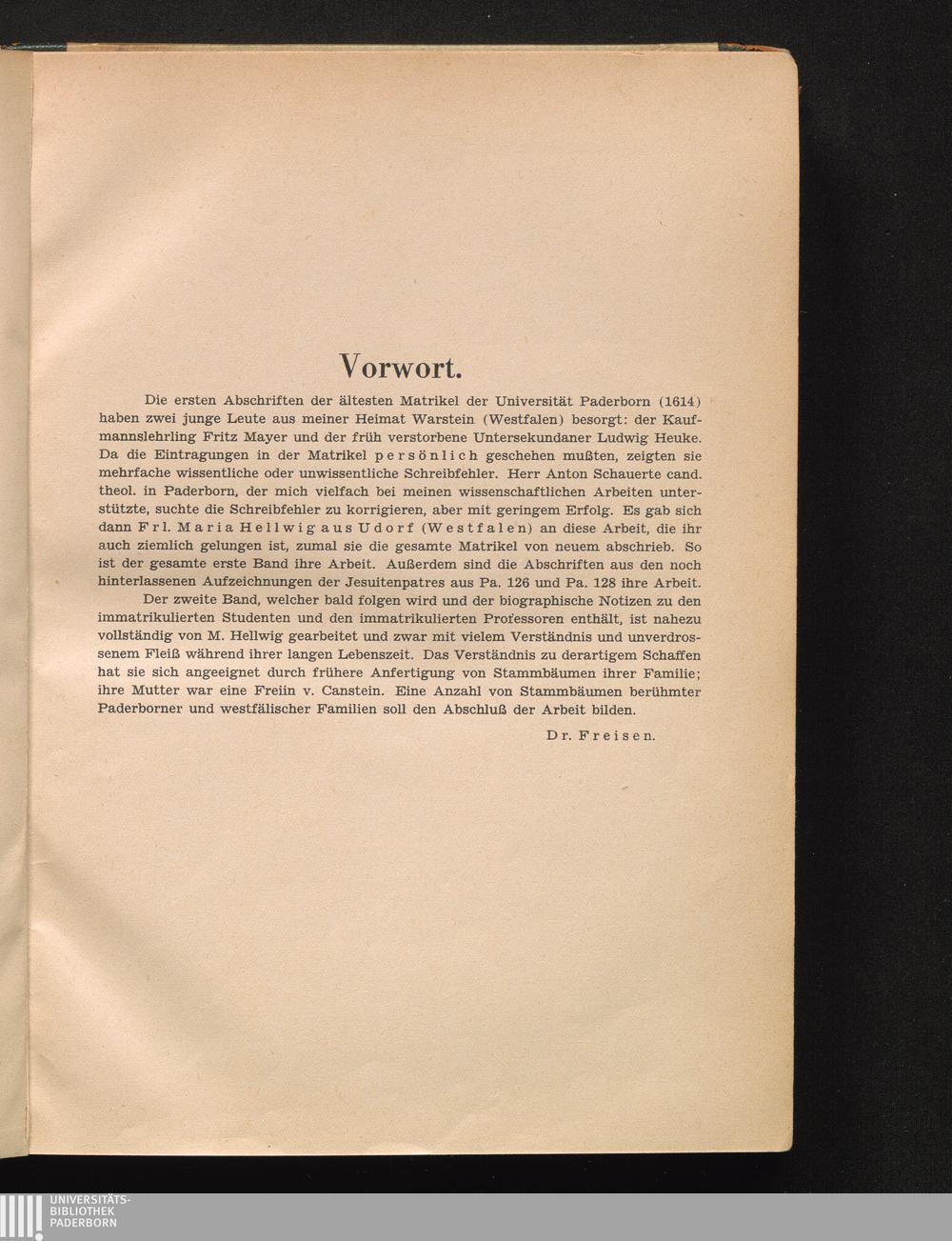 Die Matrikel der Universität Paderborn