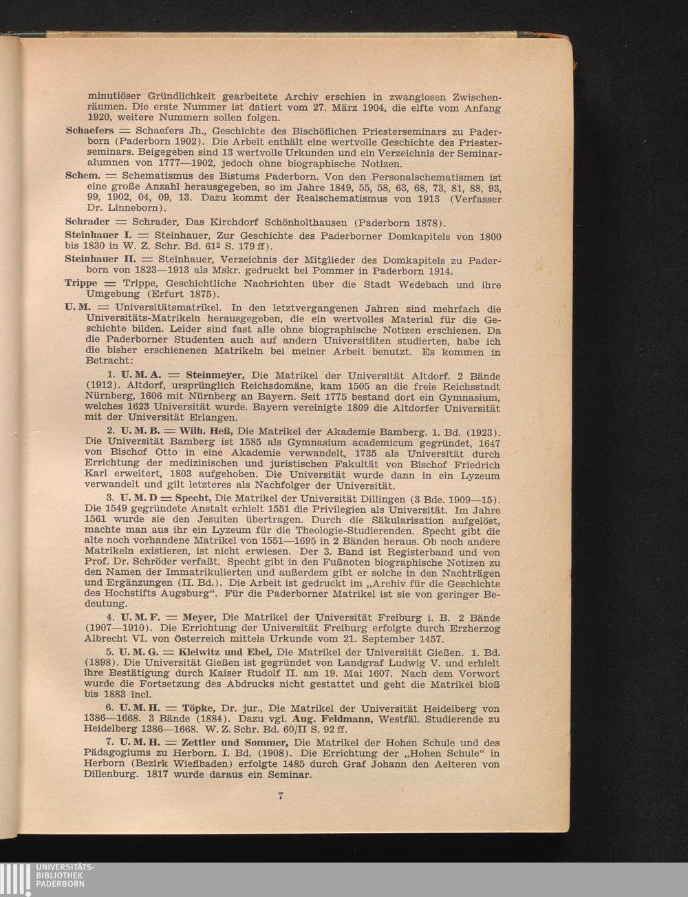 Die Matrikel der Universität Paderborn