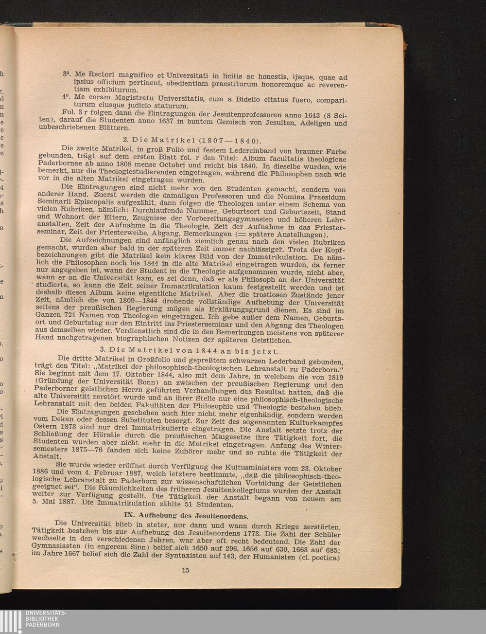 Die Matrikel der Universität Paderborn