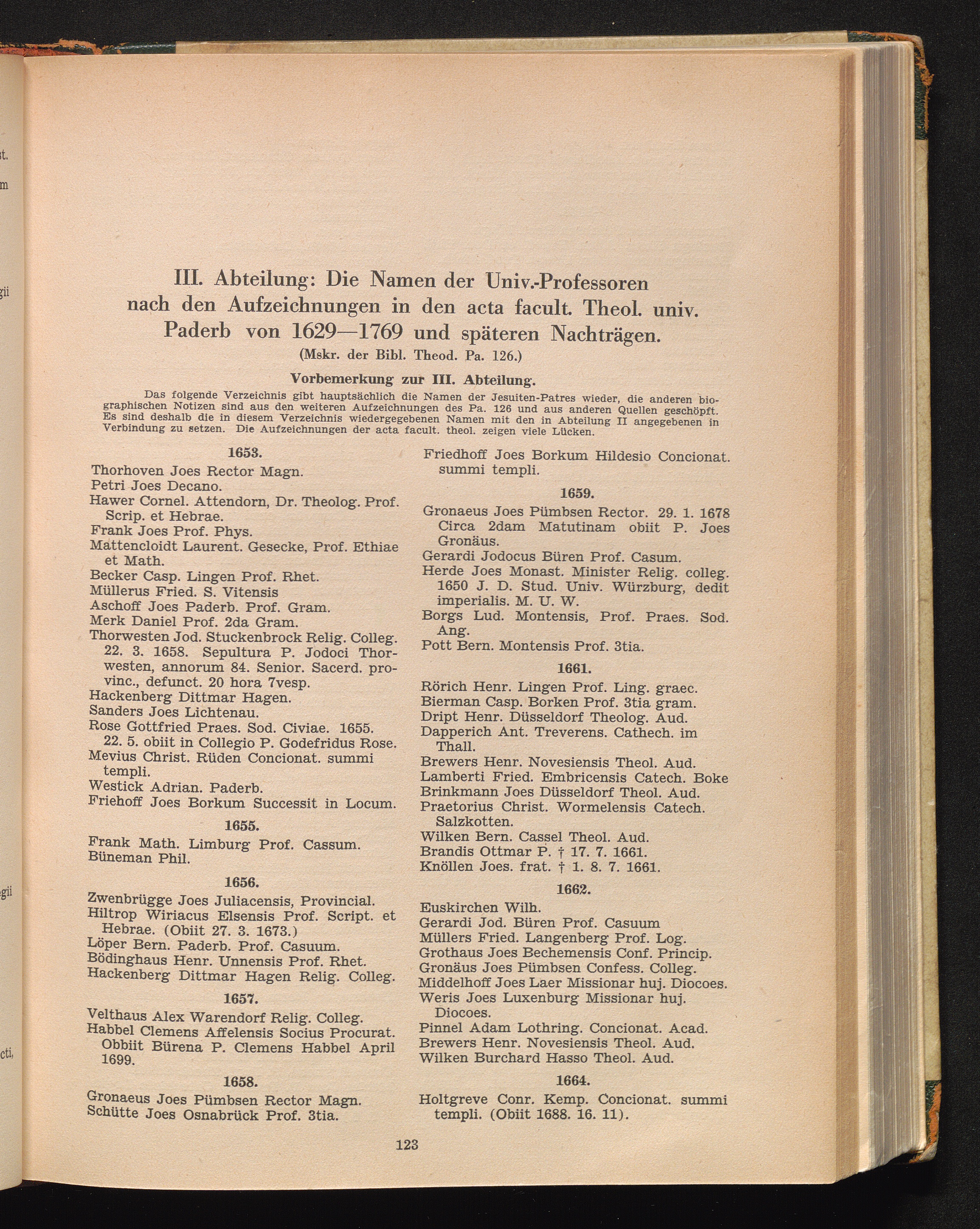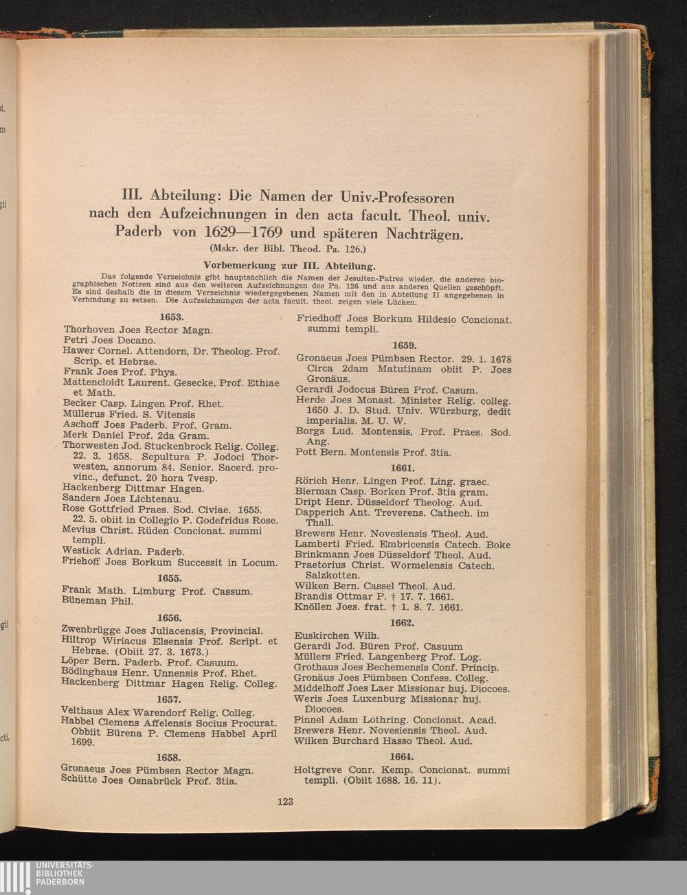 III. Abteilung: Die Namen der Univ.-Professoren nach den Acta fac. theol. der Univ.[...]