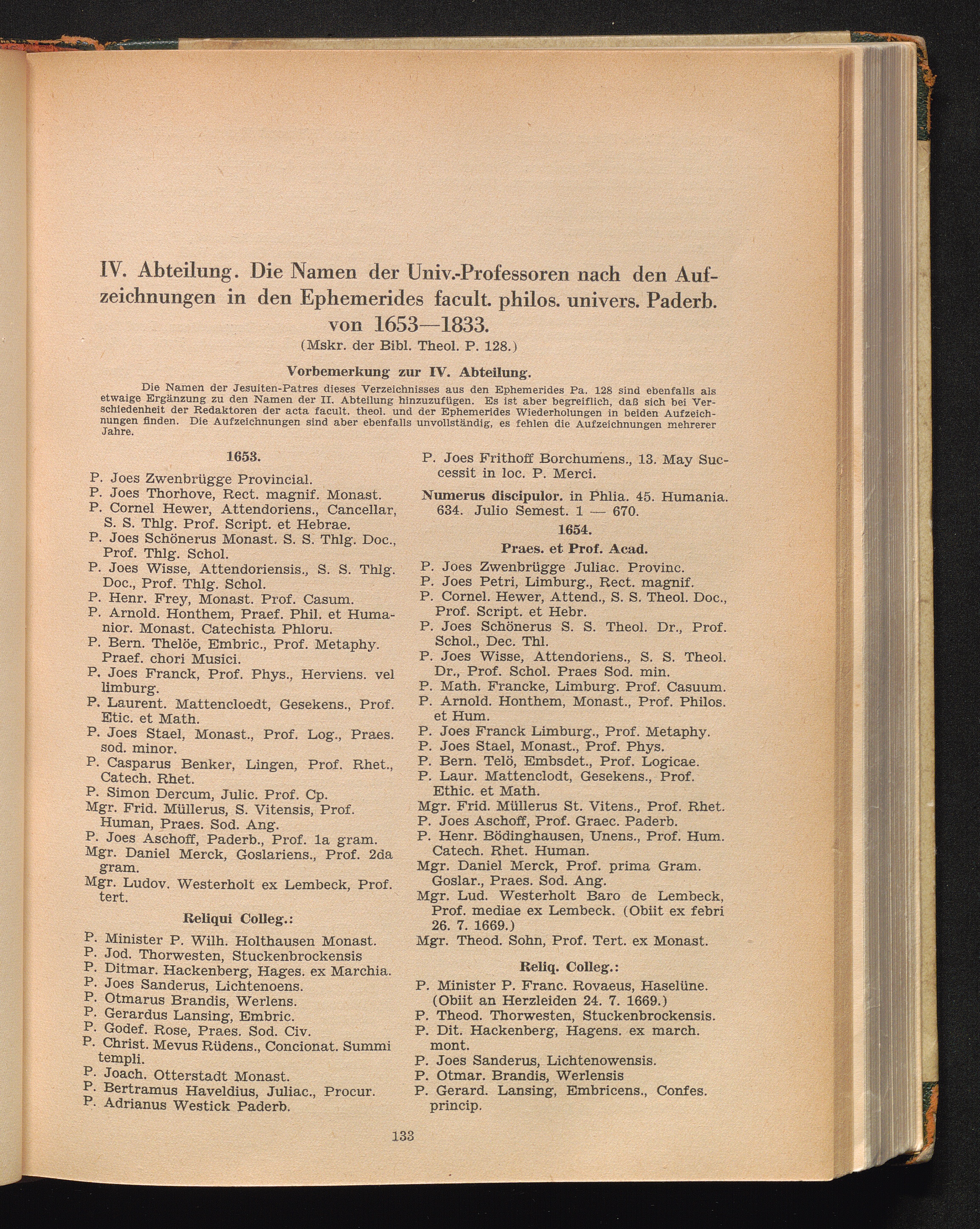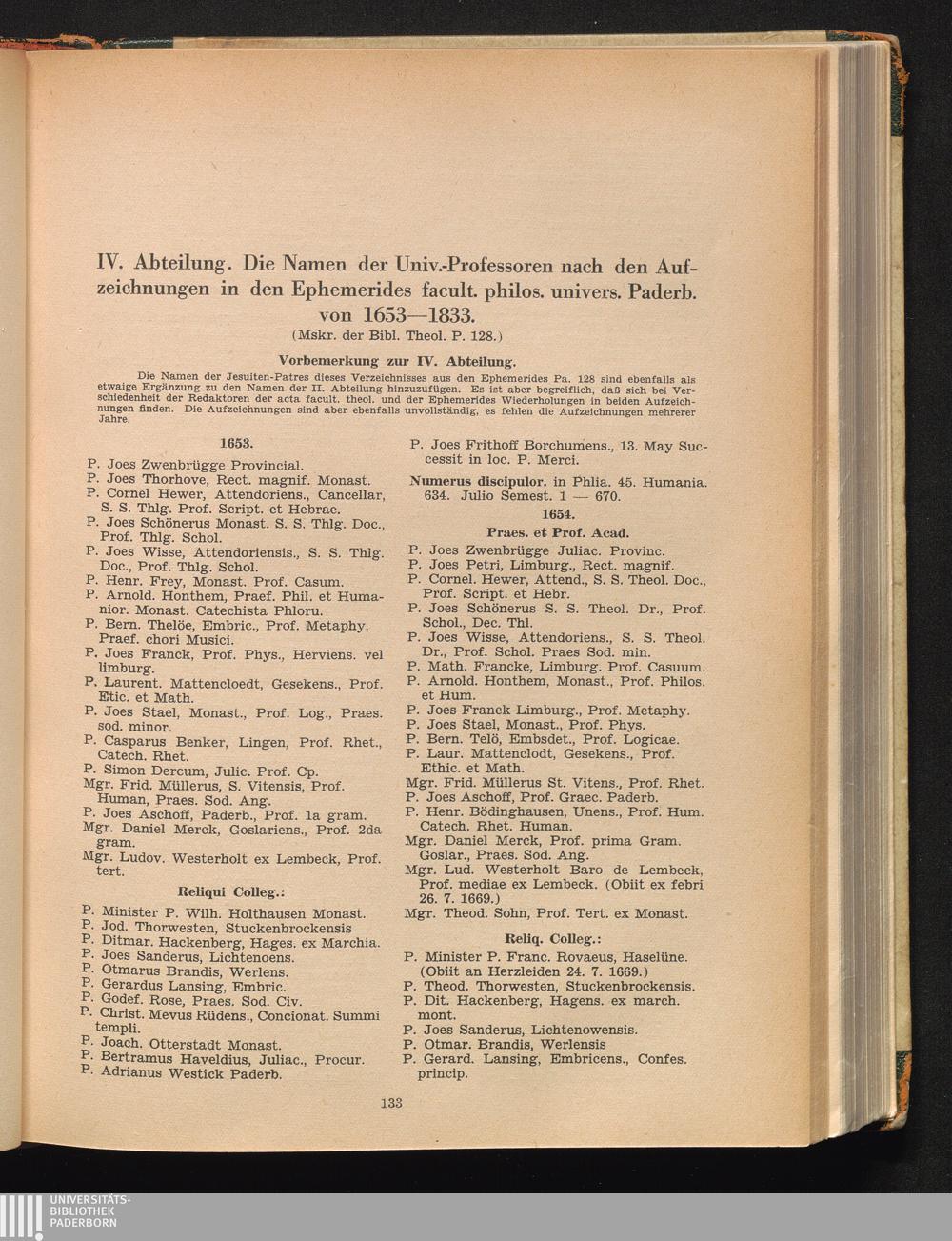 IV. Abteilung: Die Namen der Univ.-Professoren nach den Acta fac. phil. der Univ.[...]