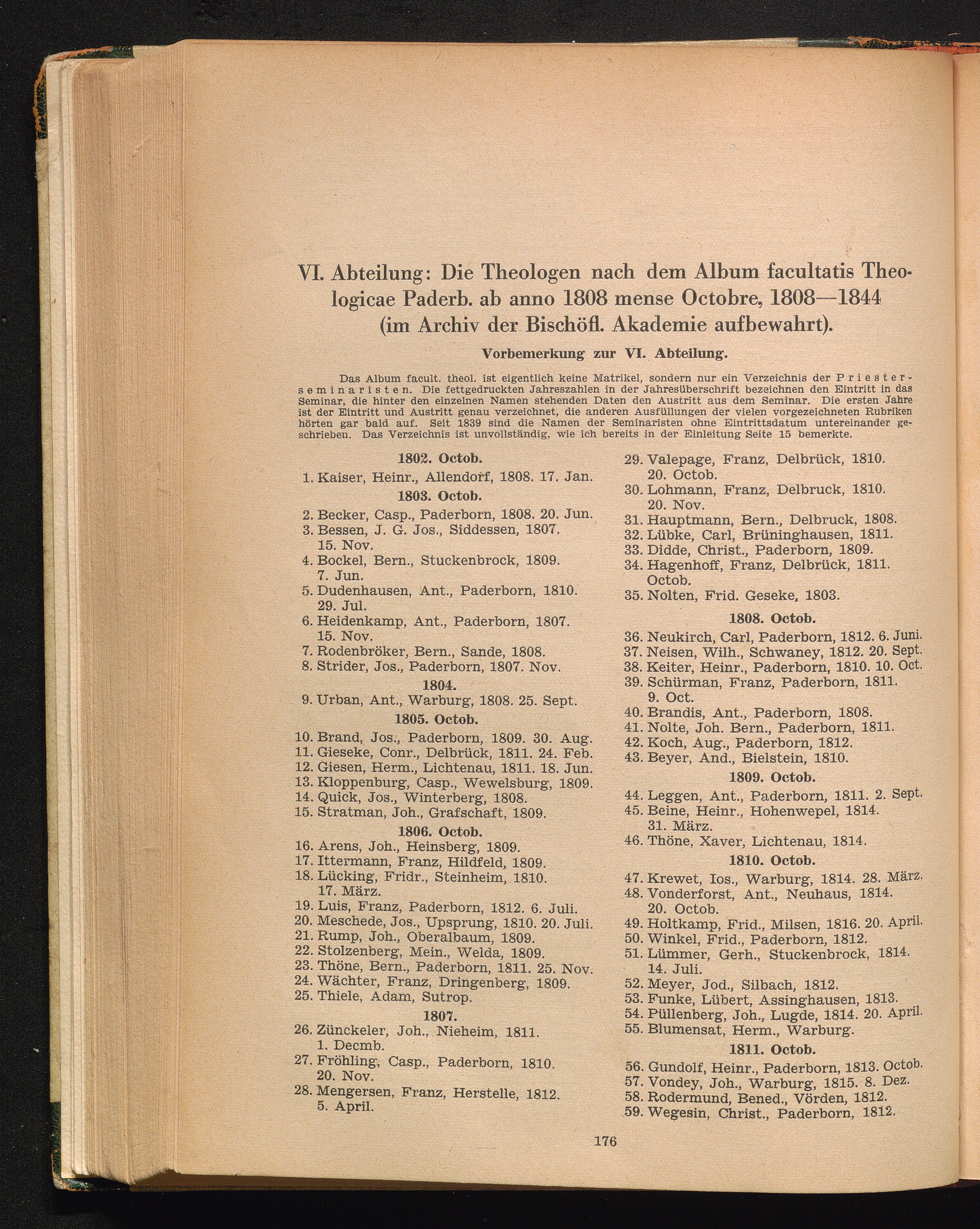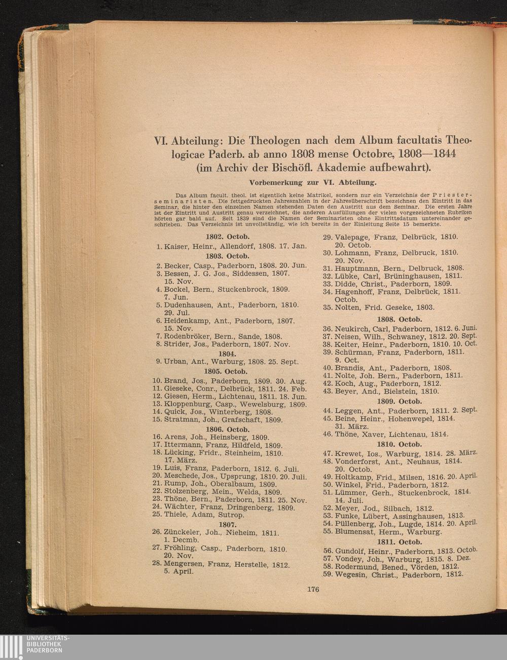 VI. Abteilung: Die Namen der Theologen nach dem Album facultatis theologicae Paderborn[...]