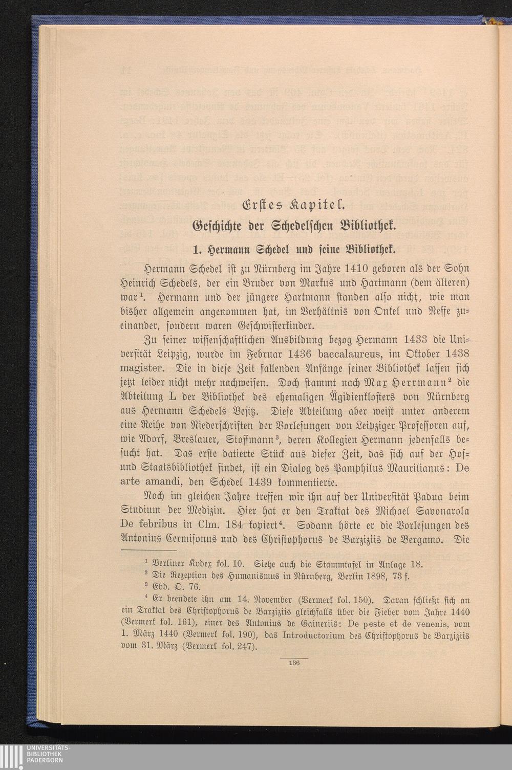 Die Schedelsche Bibliothek : ein Beitrag zur Geschichte der Ausbreitung der italienischen Renaissance, des deutschen Humanismus und der medizinischen Literatur / von Richard Stauber. Nach dem Tode des Verf. hrsg. von Otto Hartig
