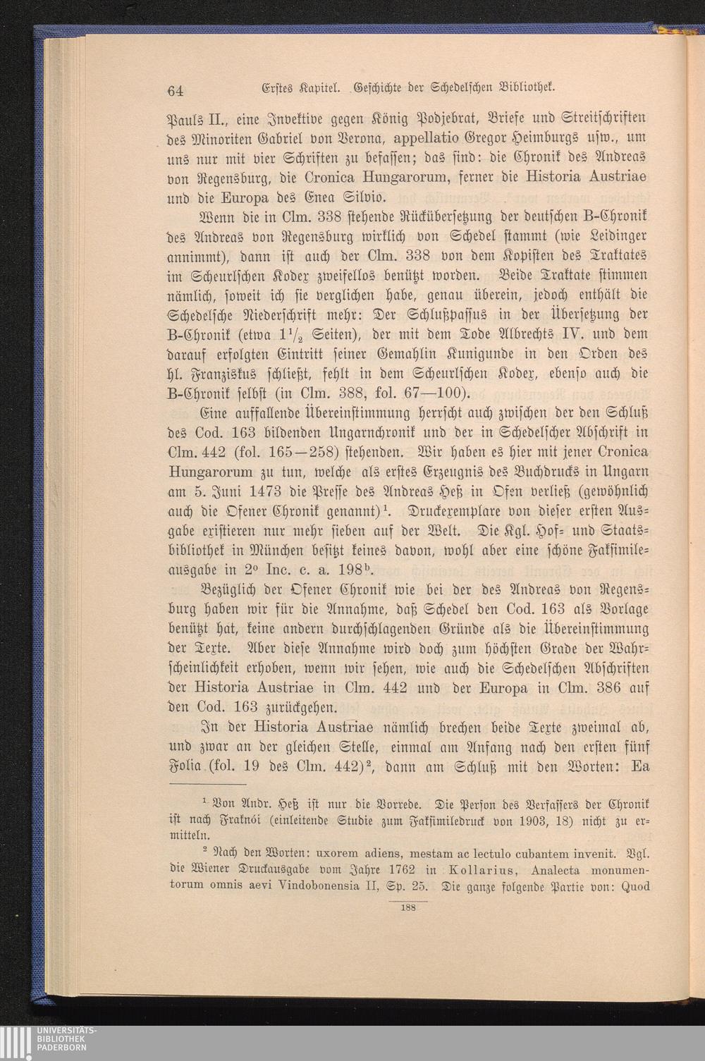 Die Schedelsche Bibliothek : ein Beitrag zur Geschichte der Ausbreitung der italienischen Renaissance, des deutschen Humanismus und der medizinischen Literatur / von Richard Stauber. Nach dem Tode des Verf. hrsg. von Otto Hartig