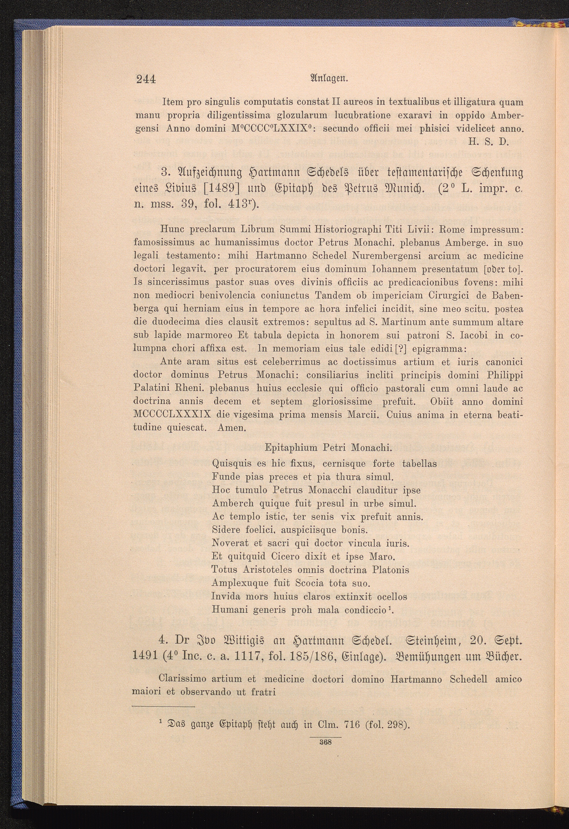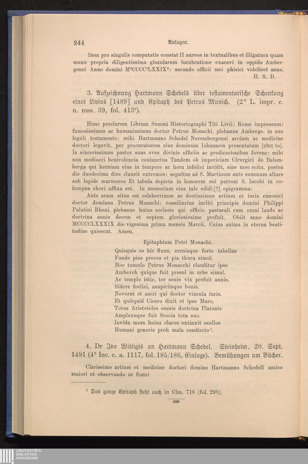 Die Schedelsche Bibliothek : ein Beitrag zur Geschichte der Ausbreitung der italienischen Renaissance, des deutschen Humanismus und der medizinischen Literatur / von Richard Stauber. Nach dem Tode des Verf. hrsg. von Otto Hartig