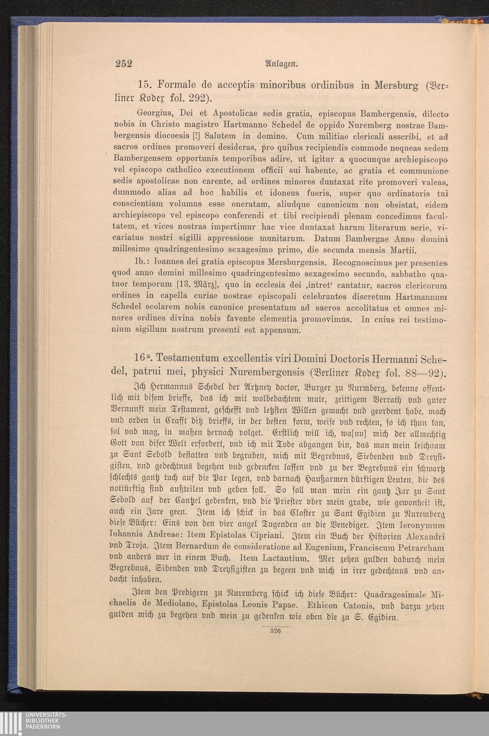 Die Schedelsche Bibliothek : ein Beitrag zur Geschichte der Ausbreitung der italienischen Renaissance, des deutschen Humanismus und der medizinischen Literatur / von Richard Stauber. Nach dem Tode des Verf. hrsg. von Otto Hartig