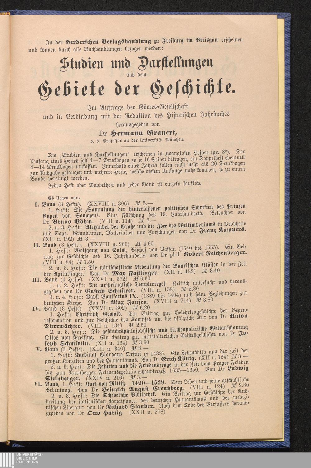 Die Schedelsche Bibliothek : ein Beitrag zur Geschichte der Ausbreitung der italienischen Renaissance, des deutschen Humanismus und der medizinischen Literatur / von Richard Stauber. Nach dem Tode des Verf. hrsg. von Otto Hartig