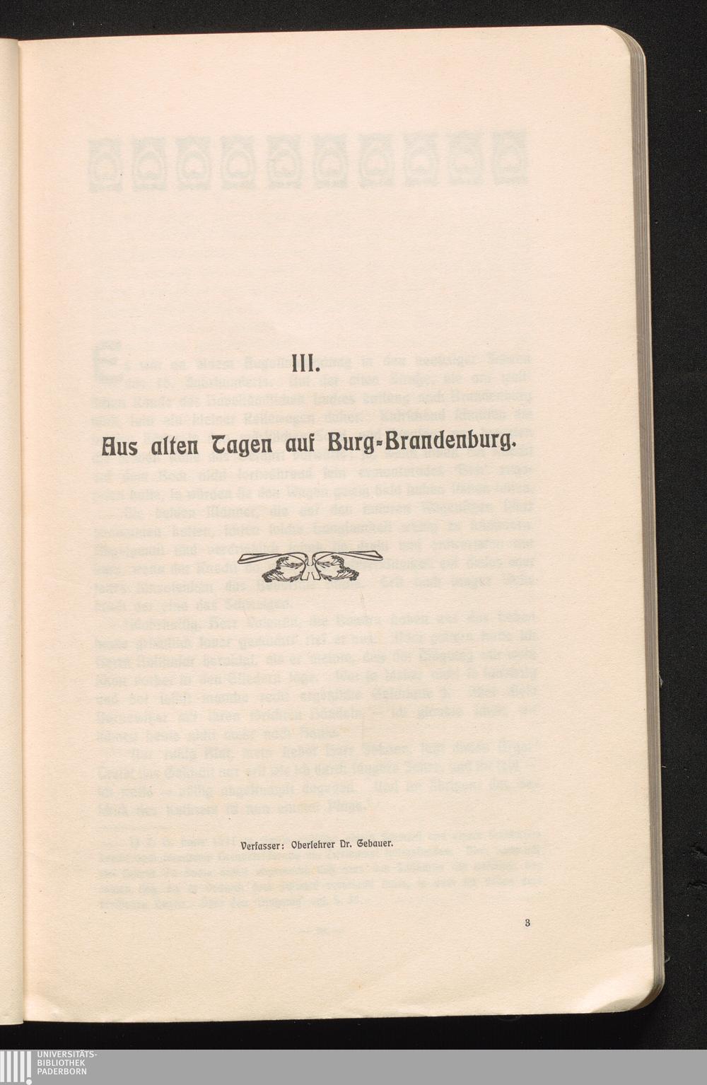 3. Aus alten Tagen auf Burg-Brandenburg. Von Oberlehrer Dr. Gebauer
