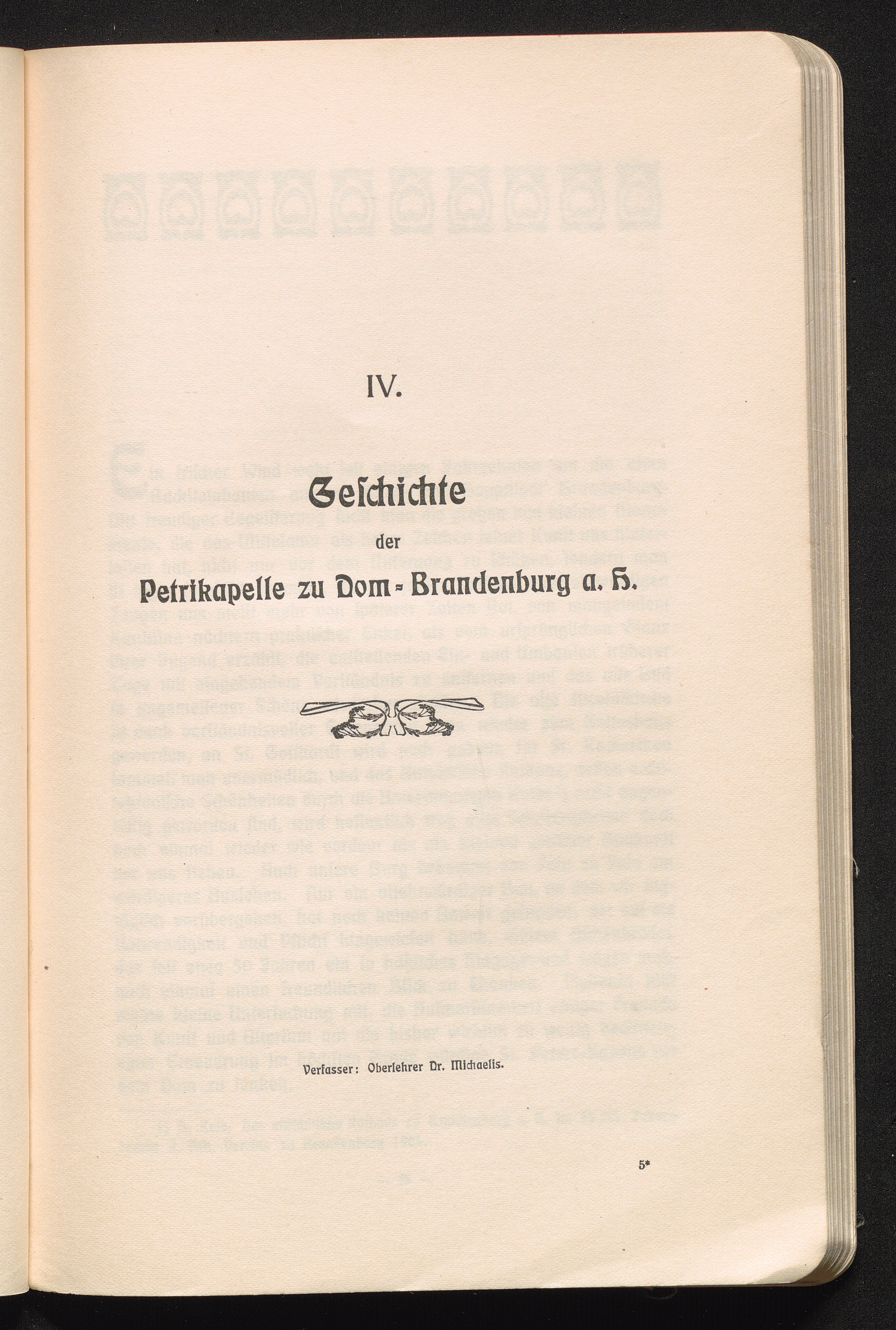 4. Geschichte der Petrikapelle zu Dom-Brandenburg a. H. Von Oberlehrer Dr. Michaelis.