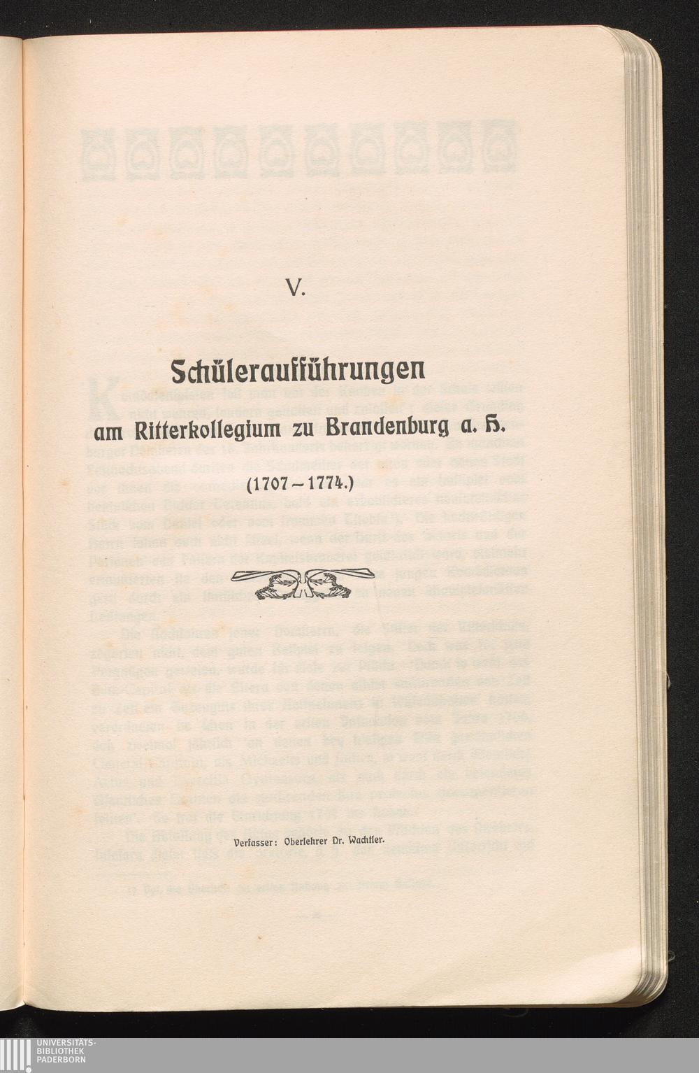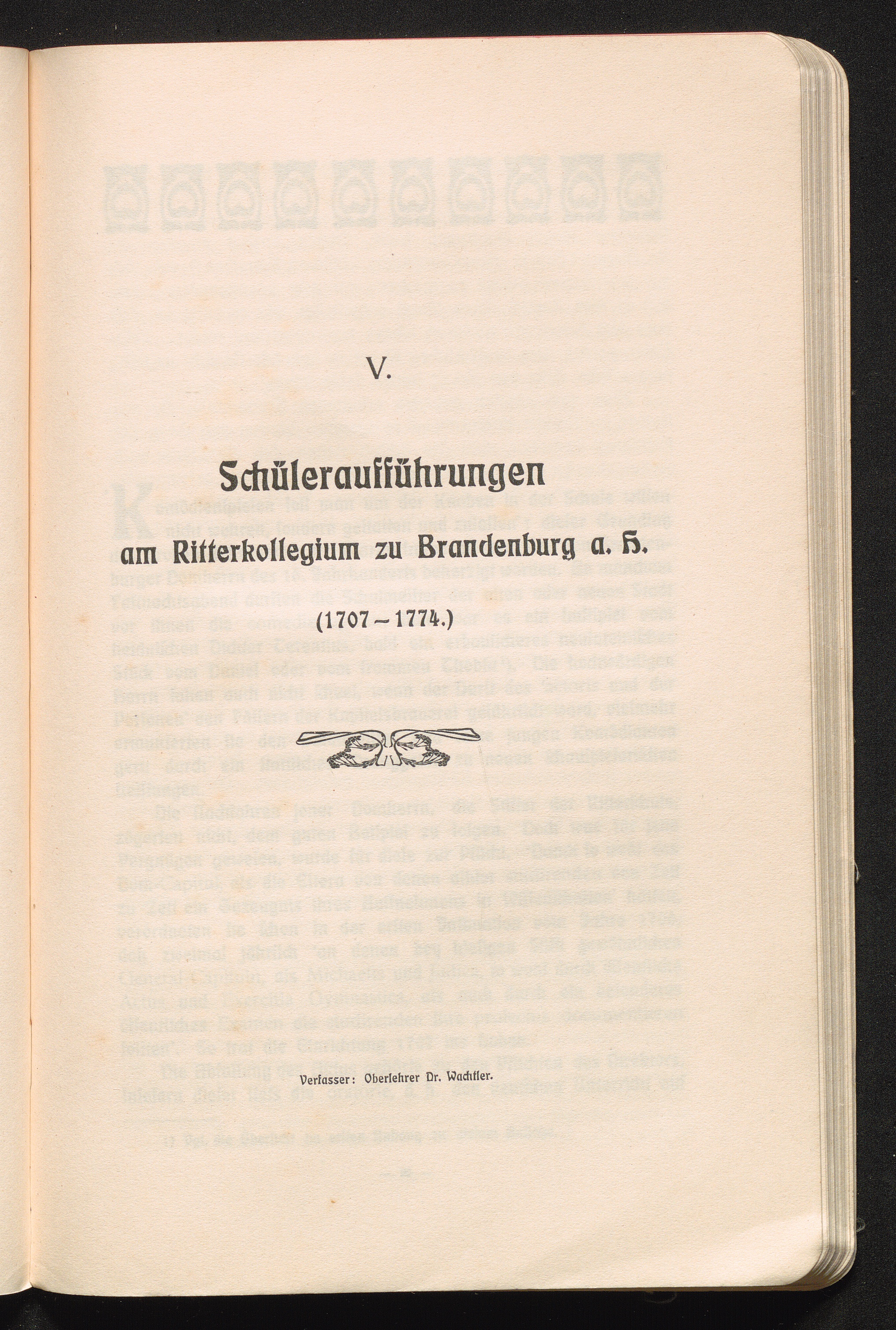 5. Schüleraufführungen am Ritterkollegium zu Brandenburg a. H. (1707 - 1774). Von Oberlehrer Dr. Wachtler