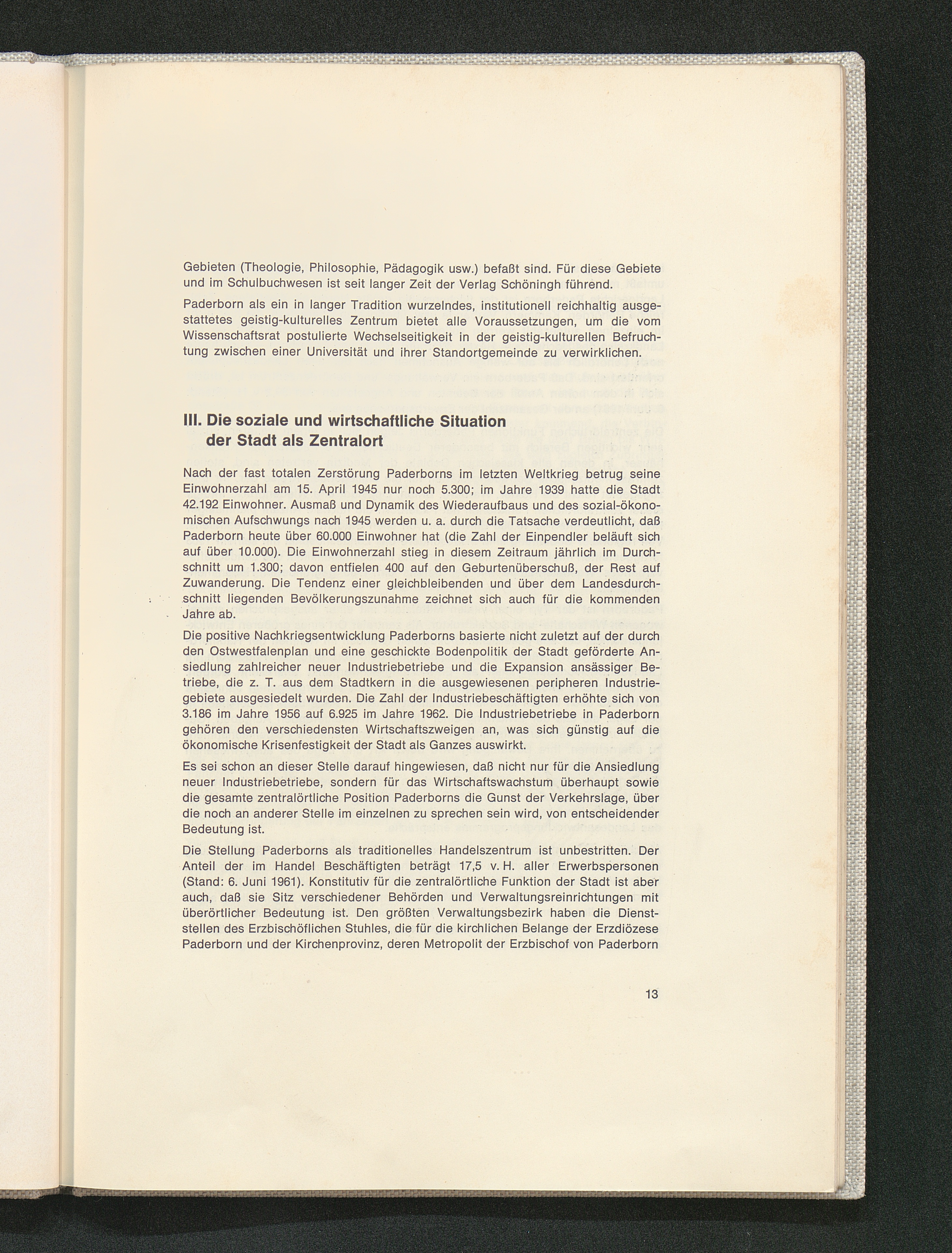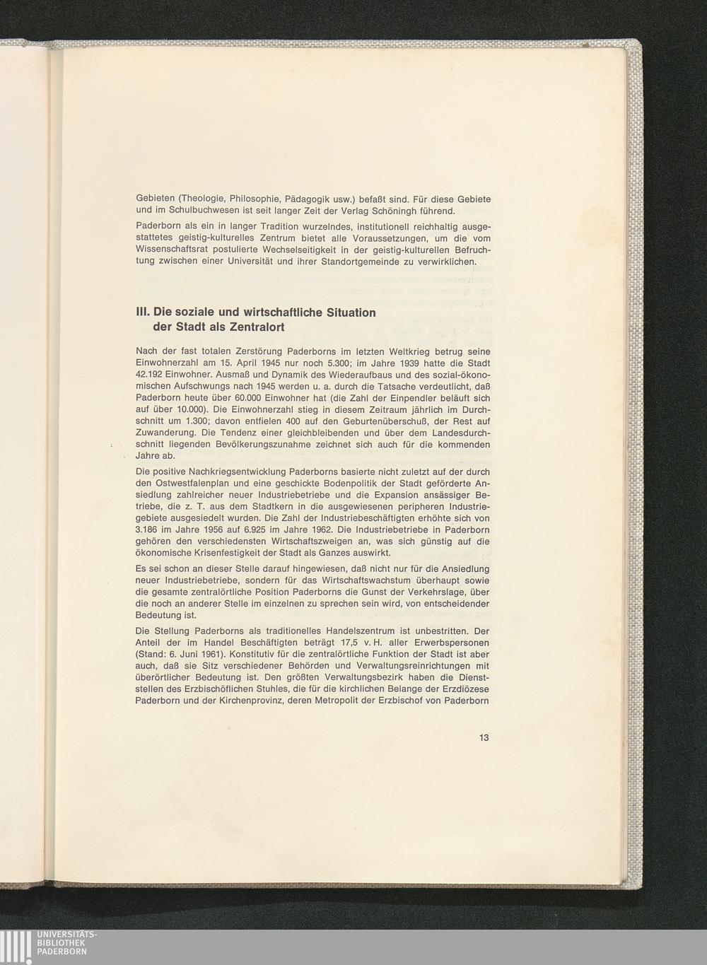 III. Die soziale und wirtschaftliche Situation der Stadt als Zentralort