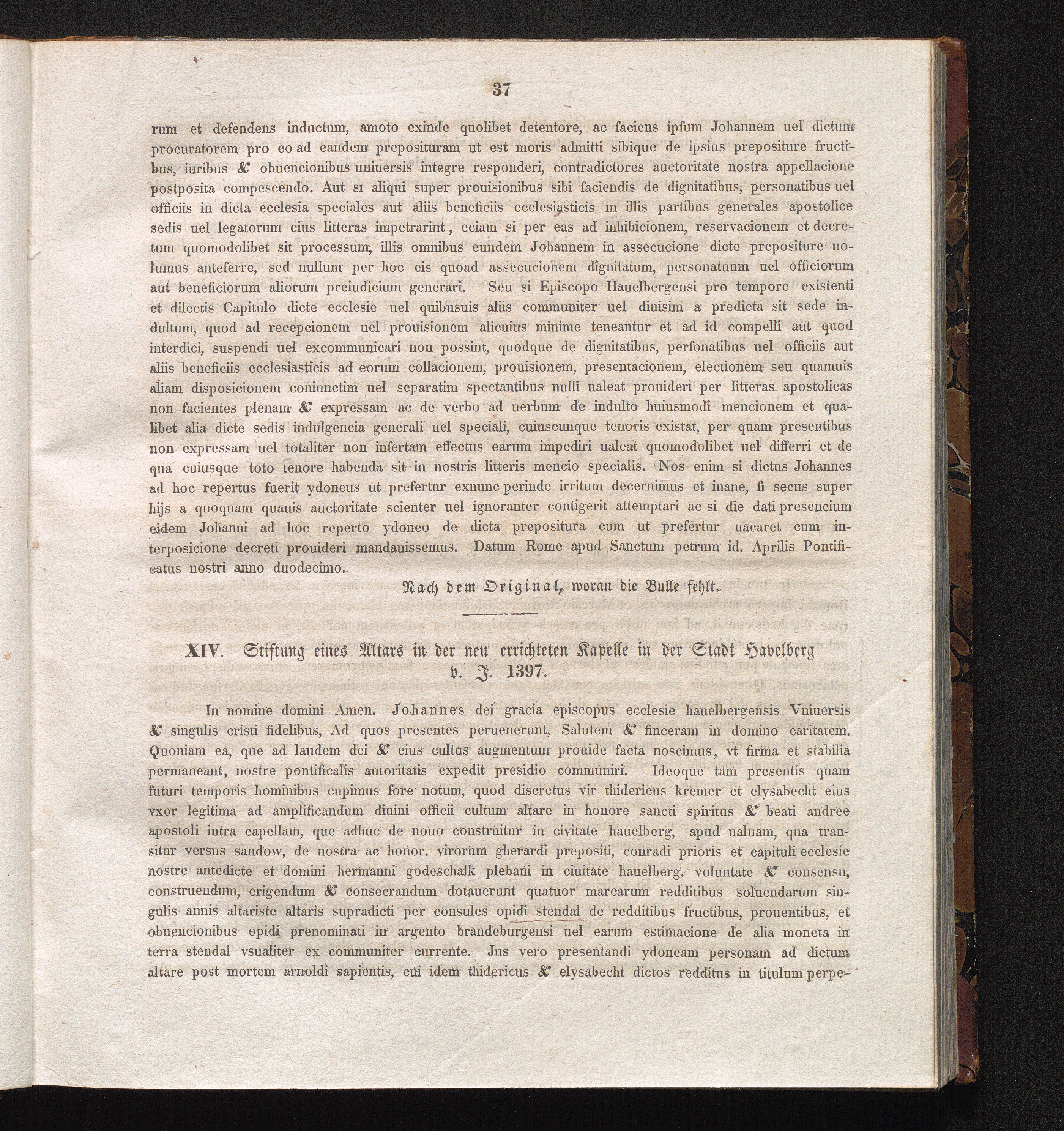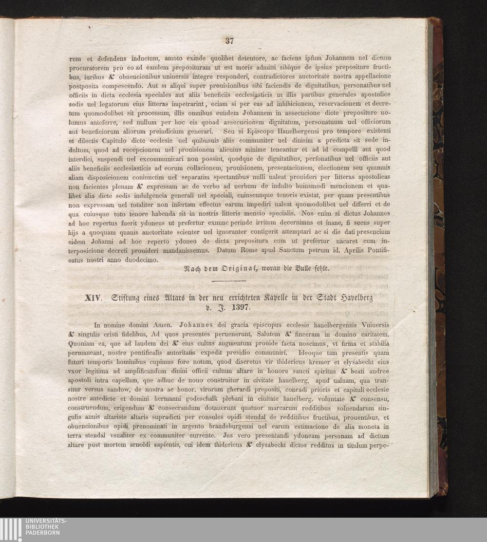 XIV. Stiftung eines Altars in der neu errichteten Kapelle in der Stadt Havelberg[...]