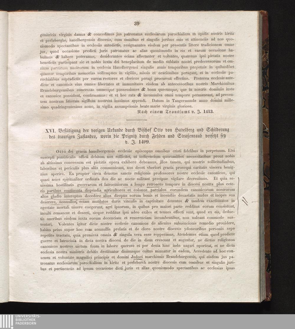 XVI. Bestätigung der vorigen Urkunde durch Bischof Otto von Havelberg und Schilderung[...]