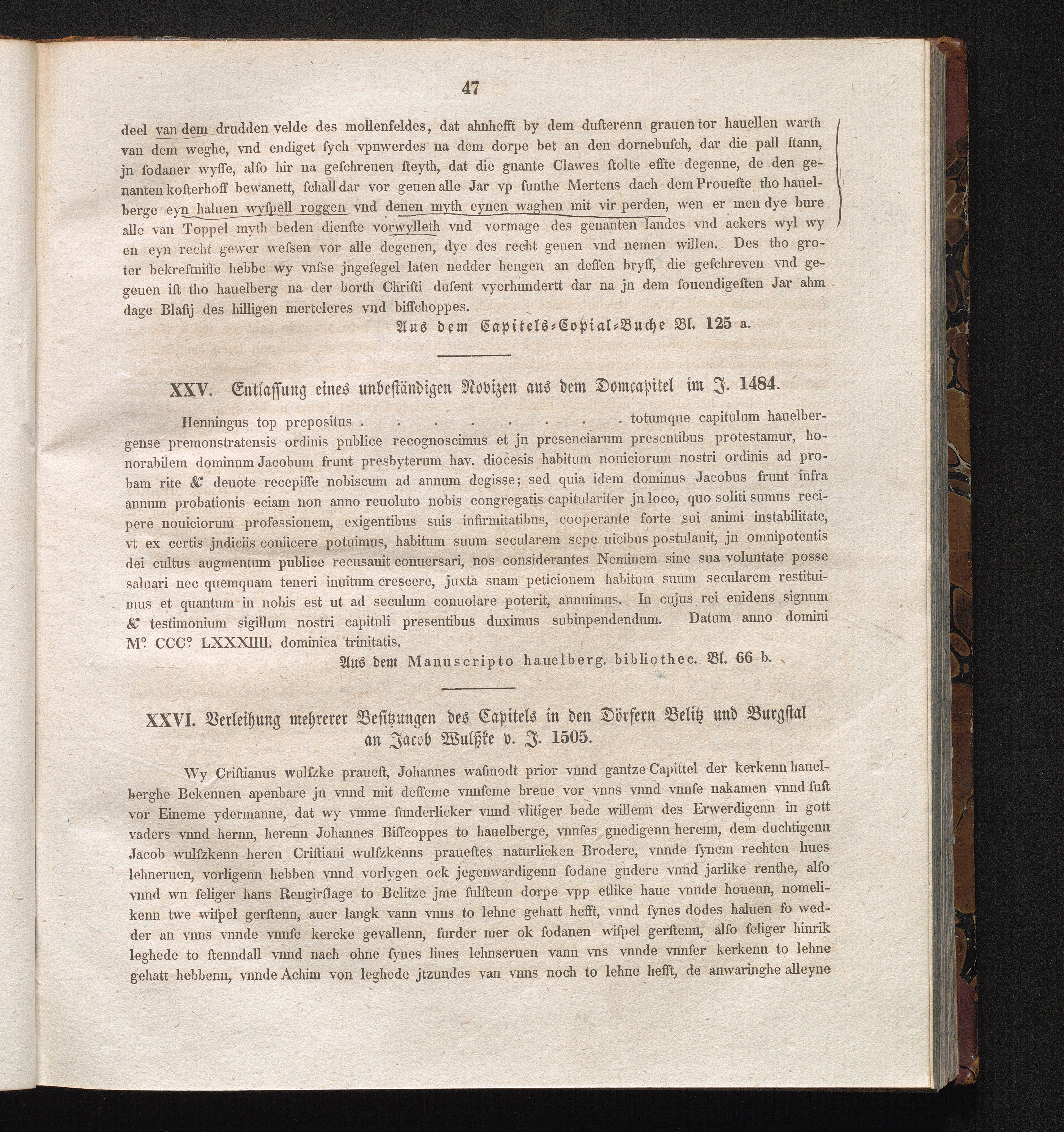 XXVI. Verleihung mehrerer Besitzungen des Capitels in den Dörfern Belitz und Burgstal[...]