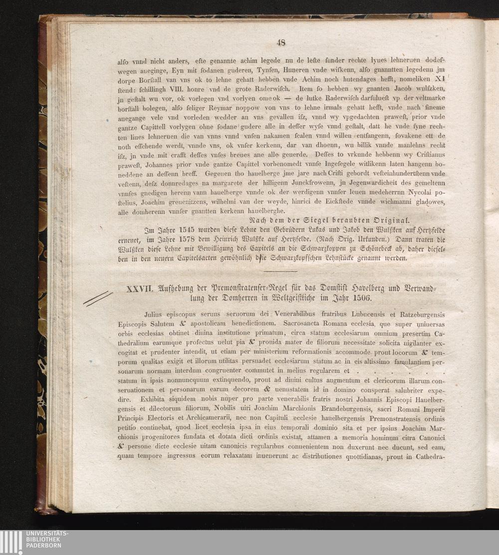 XXVII. Aufhebung der Premonstratenser-Regel für das Domstift Havelberg und Verwandlung[...]